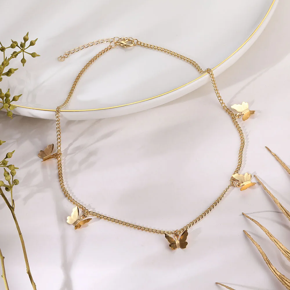 Чокер женский в богемном стиле, милое ожерелье-бабочка золотого и серебряного цвета, цепочка до ключиц, модное Ювелирное Украшение, 2020