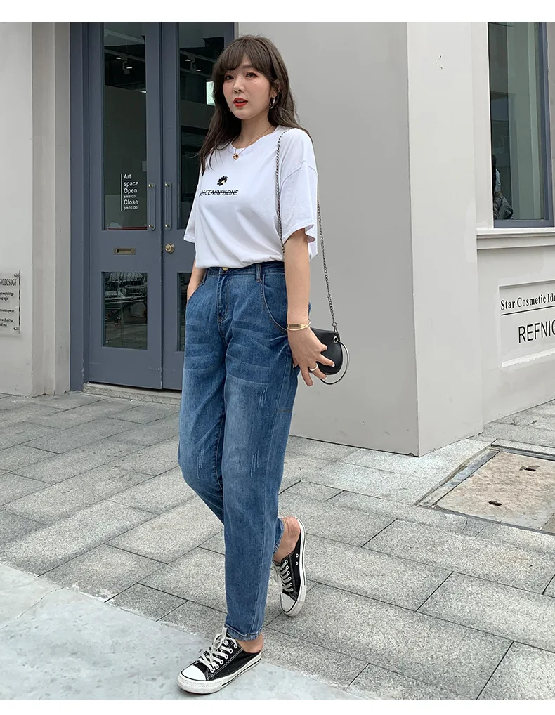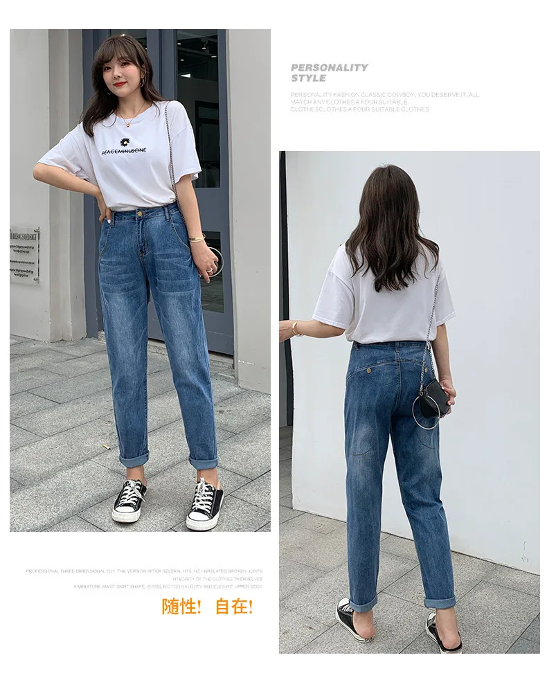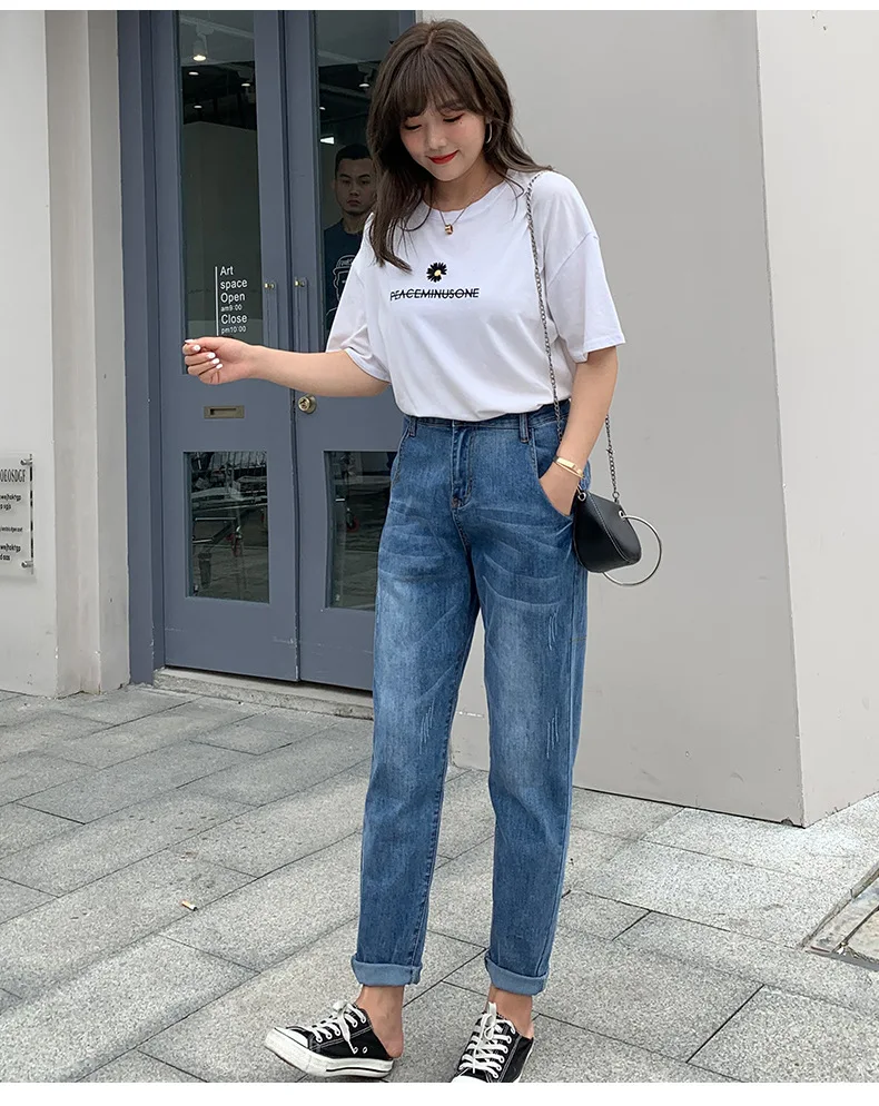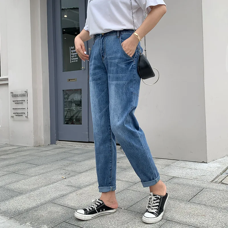 Джинсы женские с высокой талией, свободные брюки-султанки, длинные ...