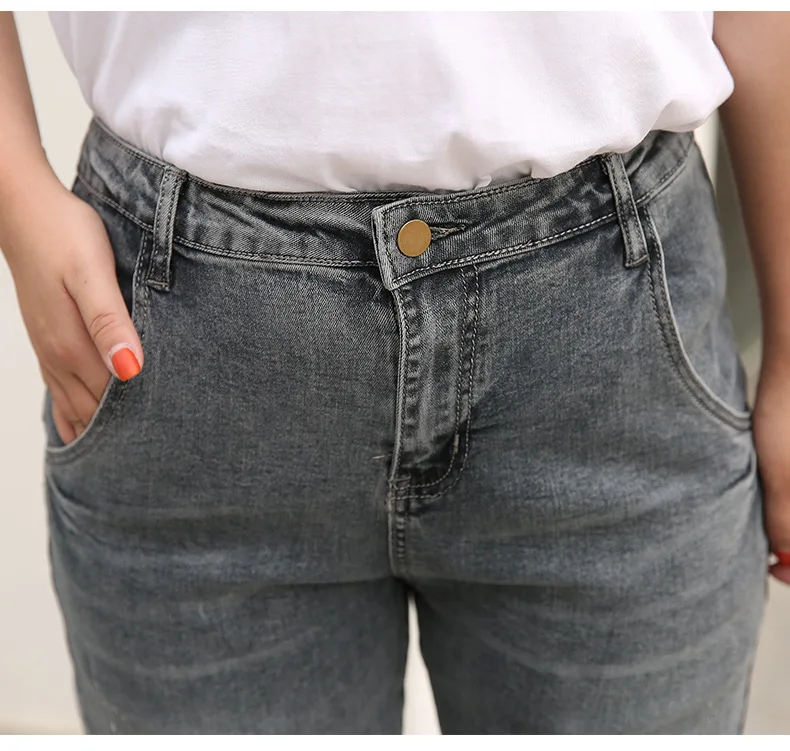 Джинсы женские с завышенной талией, повседневные длинные брюки-султанки из денима на пуговицах, Синие Серые, 5xl 6xl 7xl 8xl