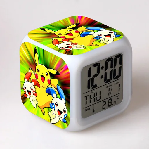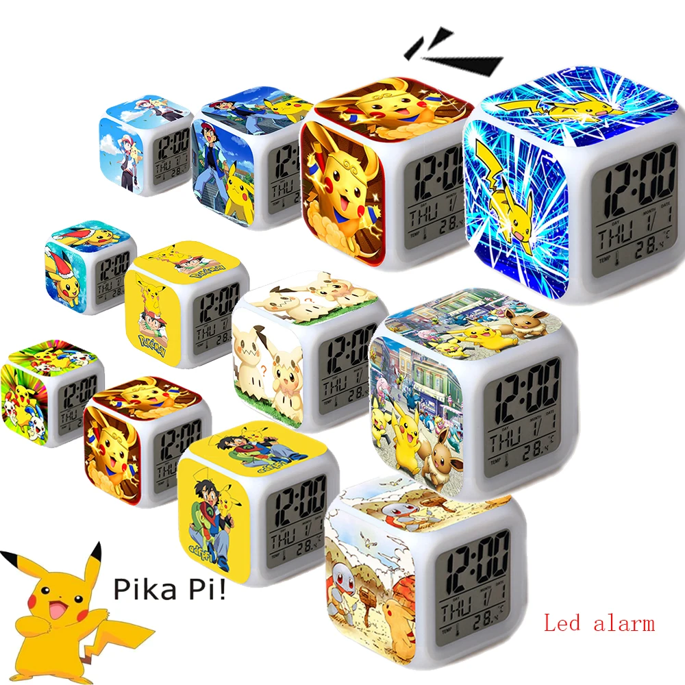 С рисунком Покемон го; С героями мультфильмов детский будильник Wake Up светильник цифровые часы-будильник детские игрушки светодиодный Пикачу часы Цвет Chang настольные Reveil Wekker