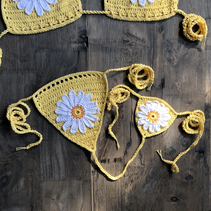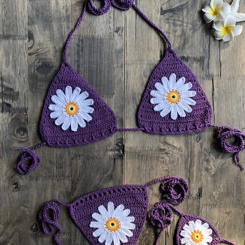 Новое поступление, микро бикини ручной работы с вязаными цветами, стринги, пляжные микро купальники, сексуальные комплекты нижнего белья 2021