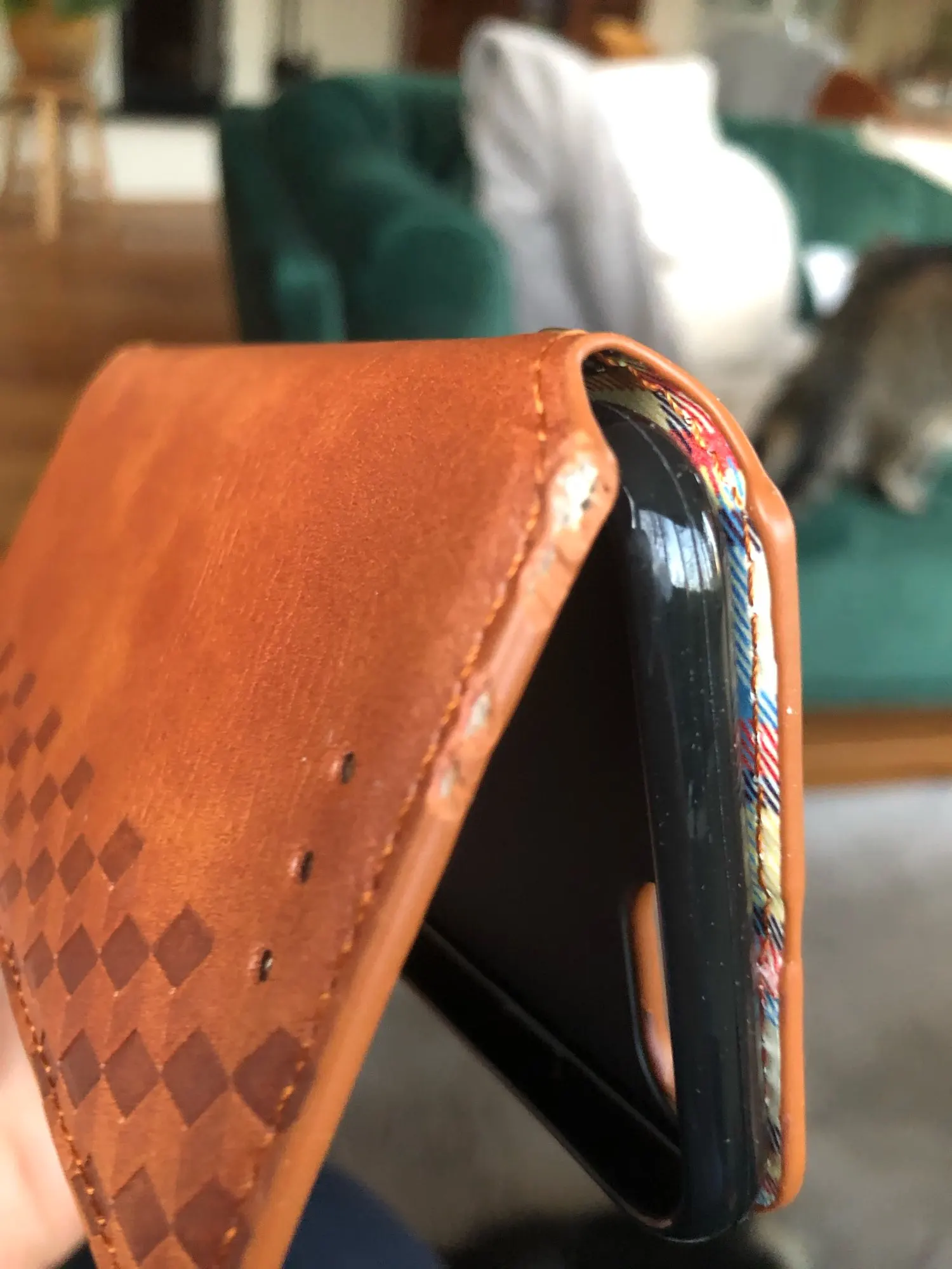 Хороший продукт, не совсем кожаный, не соответствует моим пожеланиям. Как и практически все, что касается кожаных продуктов, предложенных приложением. Ложная реклама. Если вы сообщаете своему клиенту, что это кожа, карман должен быть полностью кожаным, а не маленьким плюшем, приклеенным к нему.