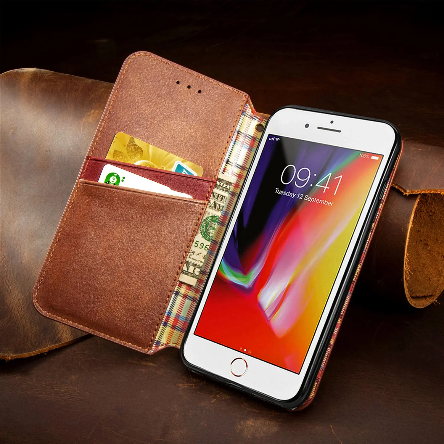 Клетчатый Кожаный чехол для IPHONE SE 2020 XS XR X 8 7 6 Plus, откидной Чехол-книжка для iPhone 11 Pro Max Coque Fundas Etui