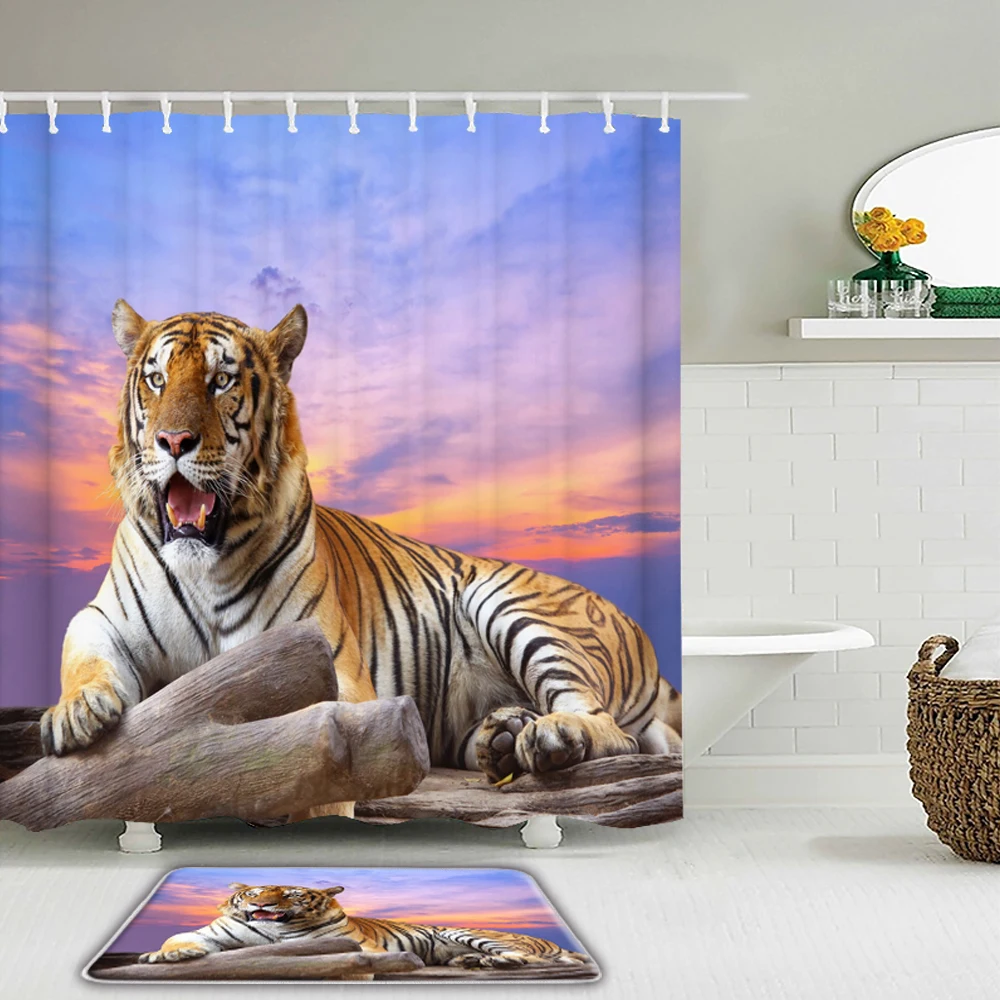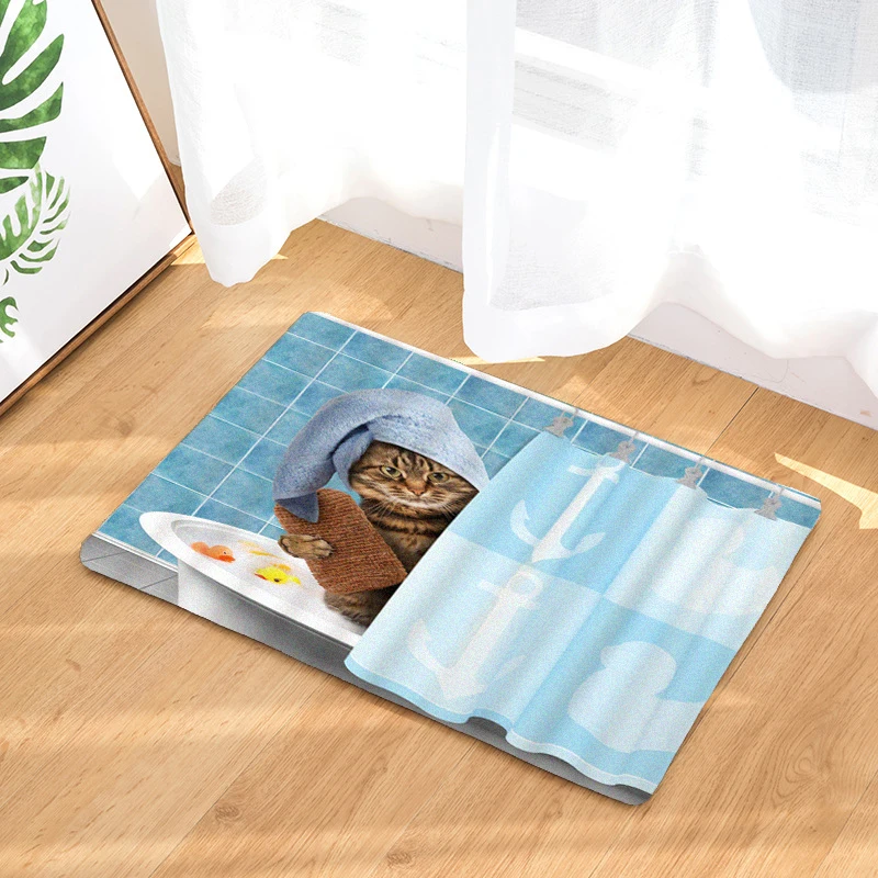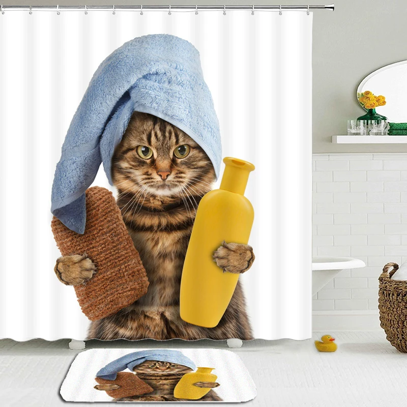 Занавеска для душа с мультяшным забавным котом и милыми животными, набор s, коврик, водонепроницаемая Милая занавеска для ванной с прямоугольным нескользящим напольным ковриком