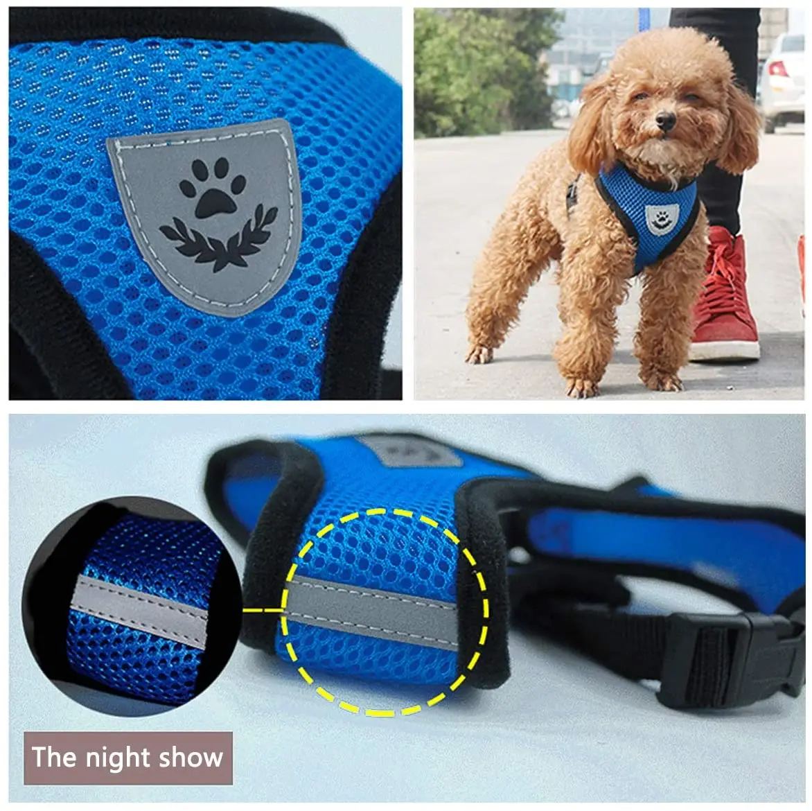 Воздухопроницаемая сетчатая шлейка для домашних животных с мягким жилетом и светоотражающей безопасной шлейкой для маленьких собак и щенков, кошек, чихуахуа, аксессуары