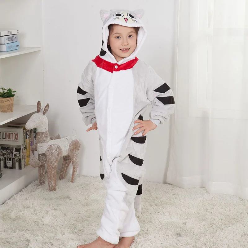 Детский Пижамный комбинезон Kigurumis для мальчиков и девочек, фланелевый мягкий милый комбинезон с рисунком котенка