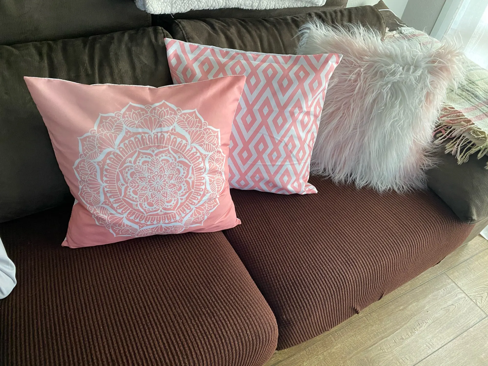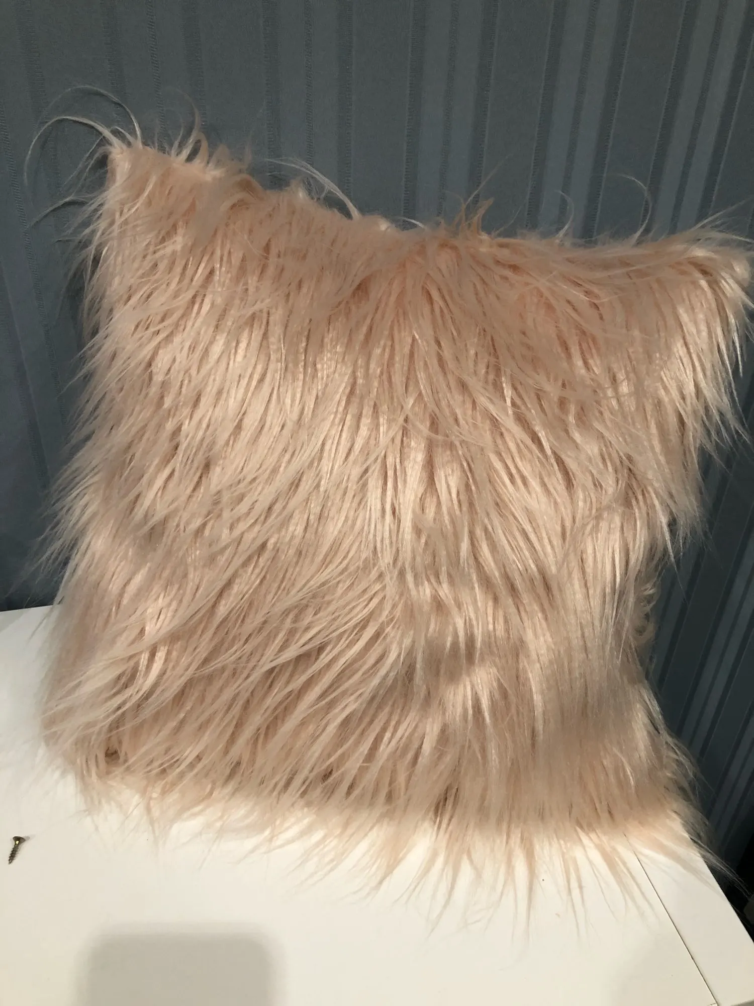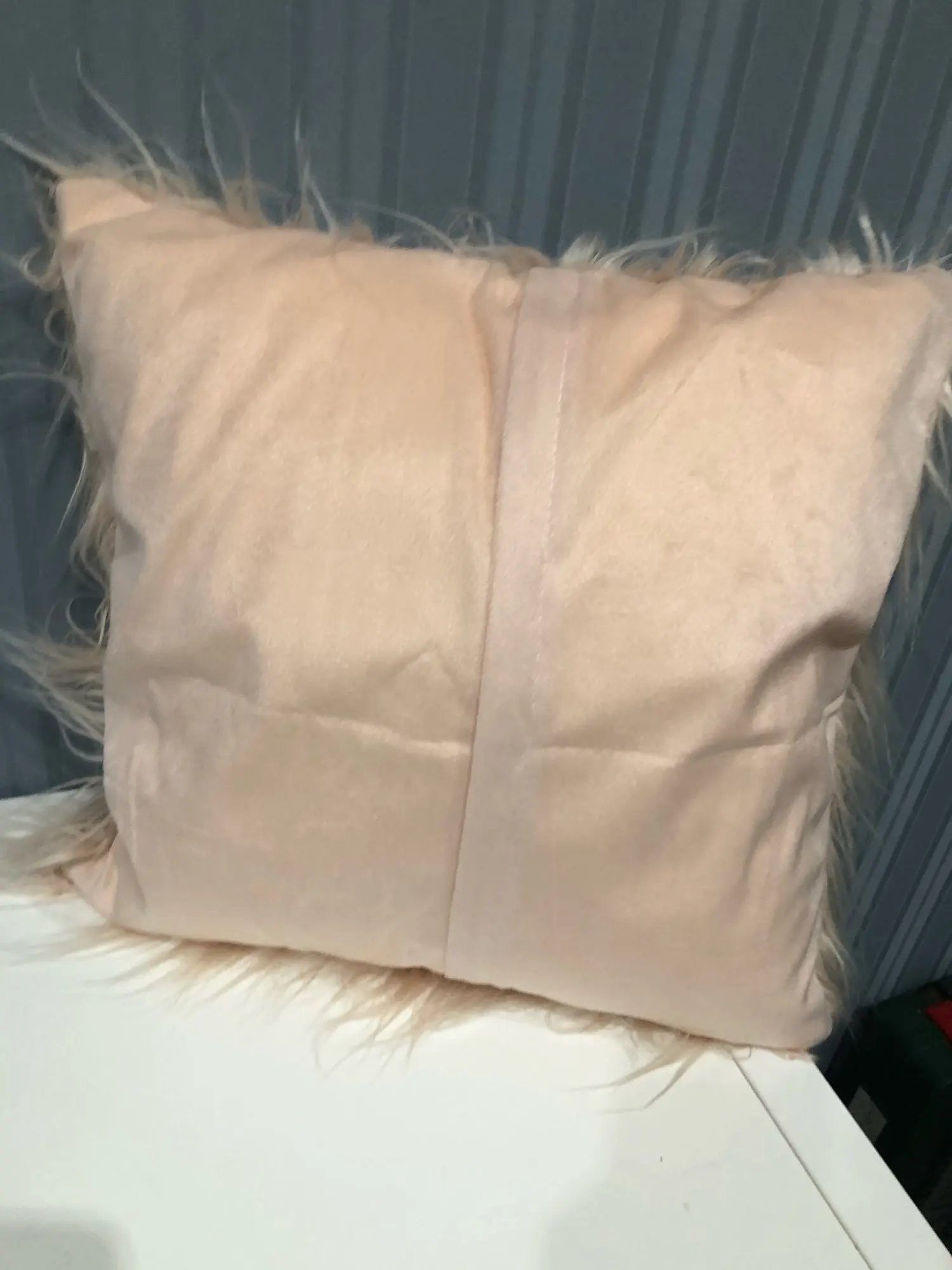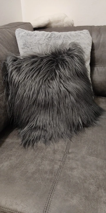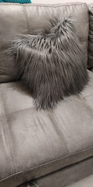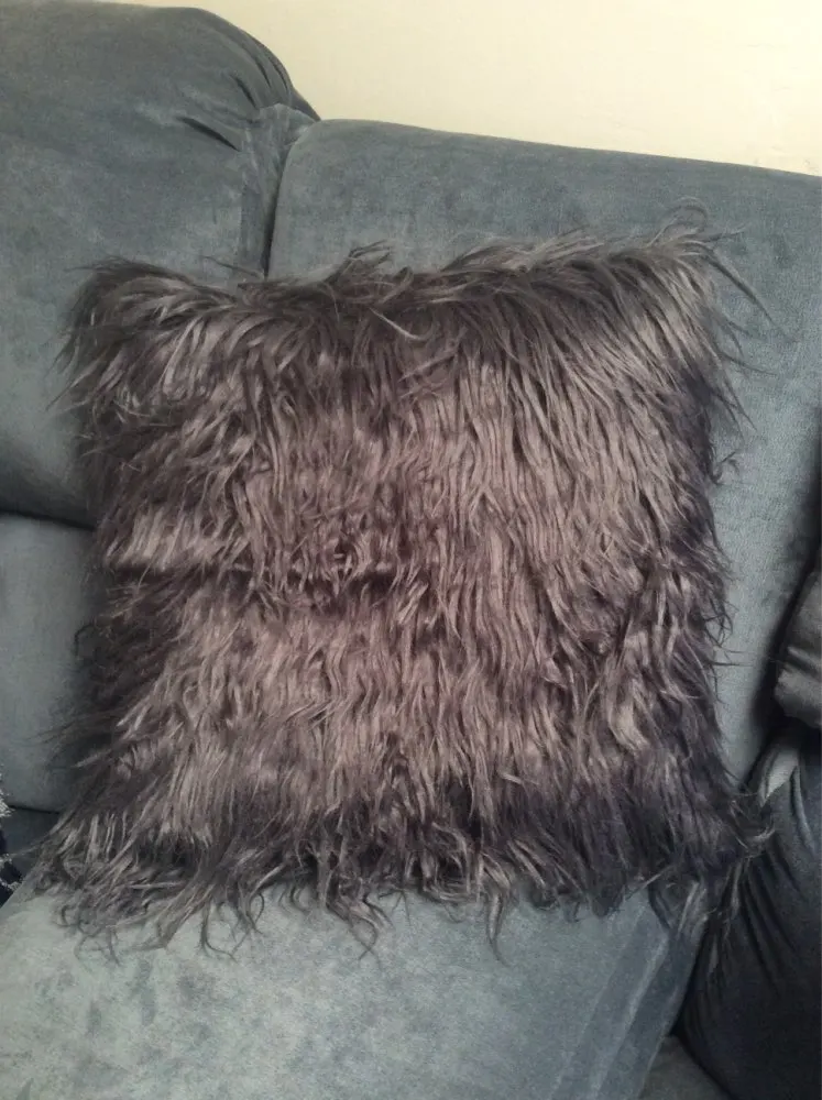 Продукт выглядит так же, как на фотографиях. Мех пушистый и цвет точно такой же, как на изображении. Задняя сторона подушки-мягкая флисовая ткань. Рекомендуется этот чехол для подушки