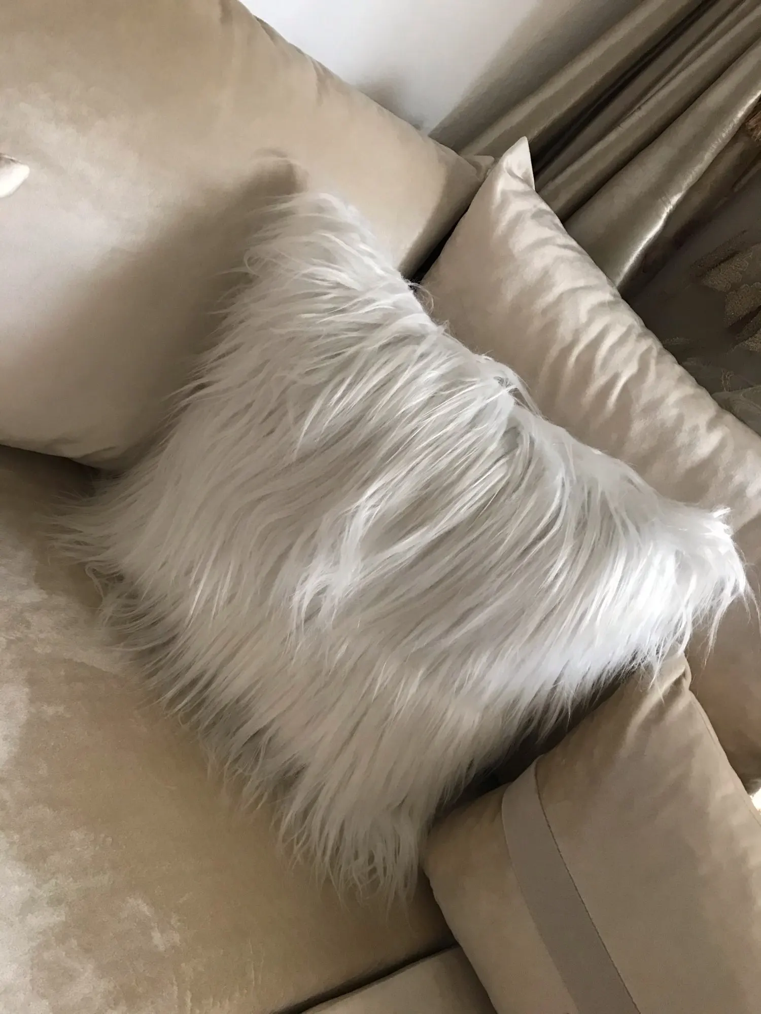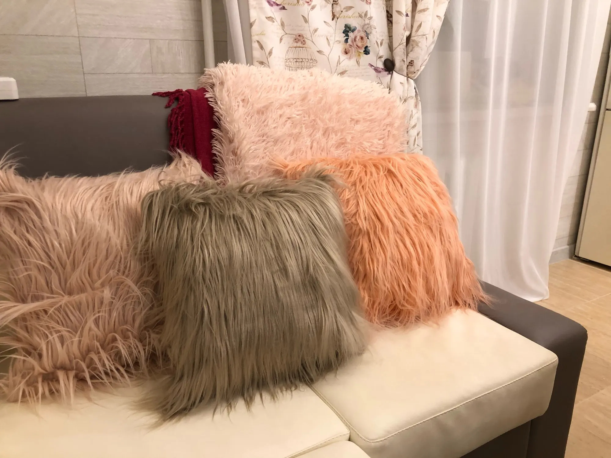 Хорошие наволочки на молнии ,пушистый длинный мех.с продавцом не общалась.Пришли за две недели .