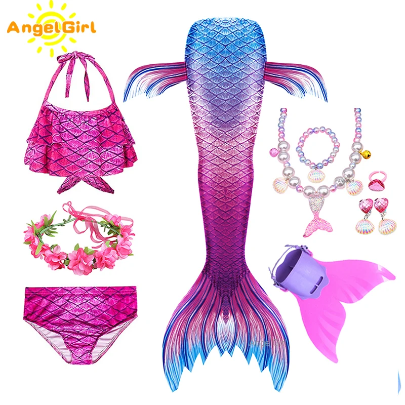 AngelGirl 2021 плавательный хвост Русалочки с ластами для девочек Купальник Русалочки для детей пляжный Косплей Русалочки рождественские подарки
