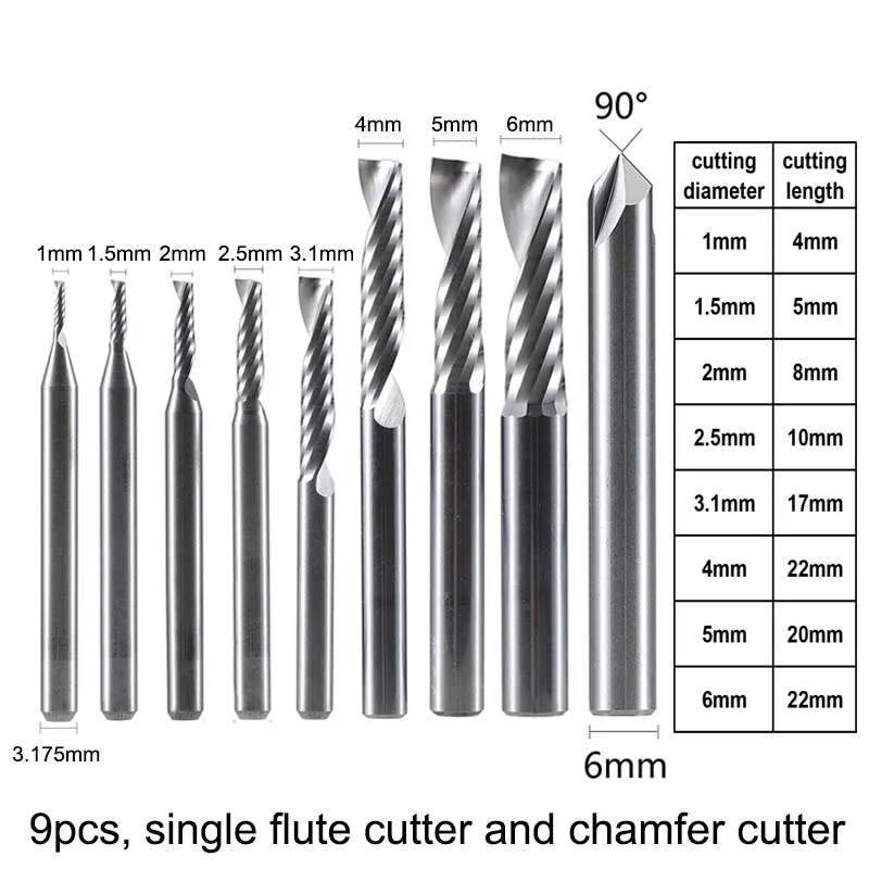 ЧПУ твердосплавные гравировочные фрезы по дереву набор 4 мм 5 мм 6 мм хвостовик фрезы для резьбы по дереву концевые фрезы Фирменное наименование: DREANIQUE Тип: Концевая фреза Материал: вольфрамовый кобальтовый сплав Упаковка: 6 шт./компл., 8 шт./компл., 9 шт./компл. Диаметр: 4,0 мм, 5 мм, 6 мм ЧПУ или нет: ЧПУ Подходящие материалы: твердая древесина, Cu, Al, нержавеющая сталь, чугун