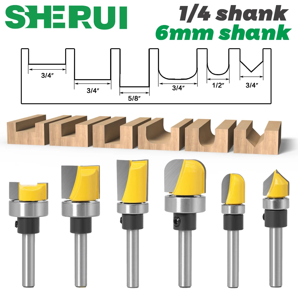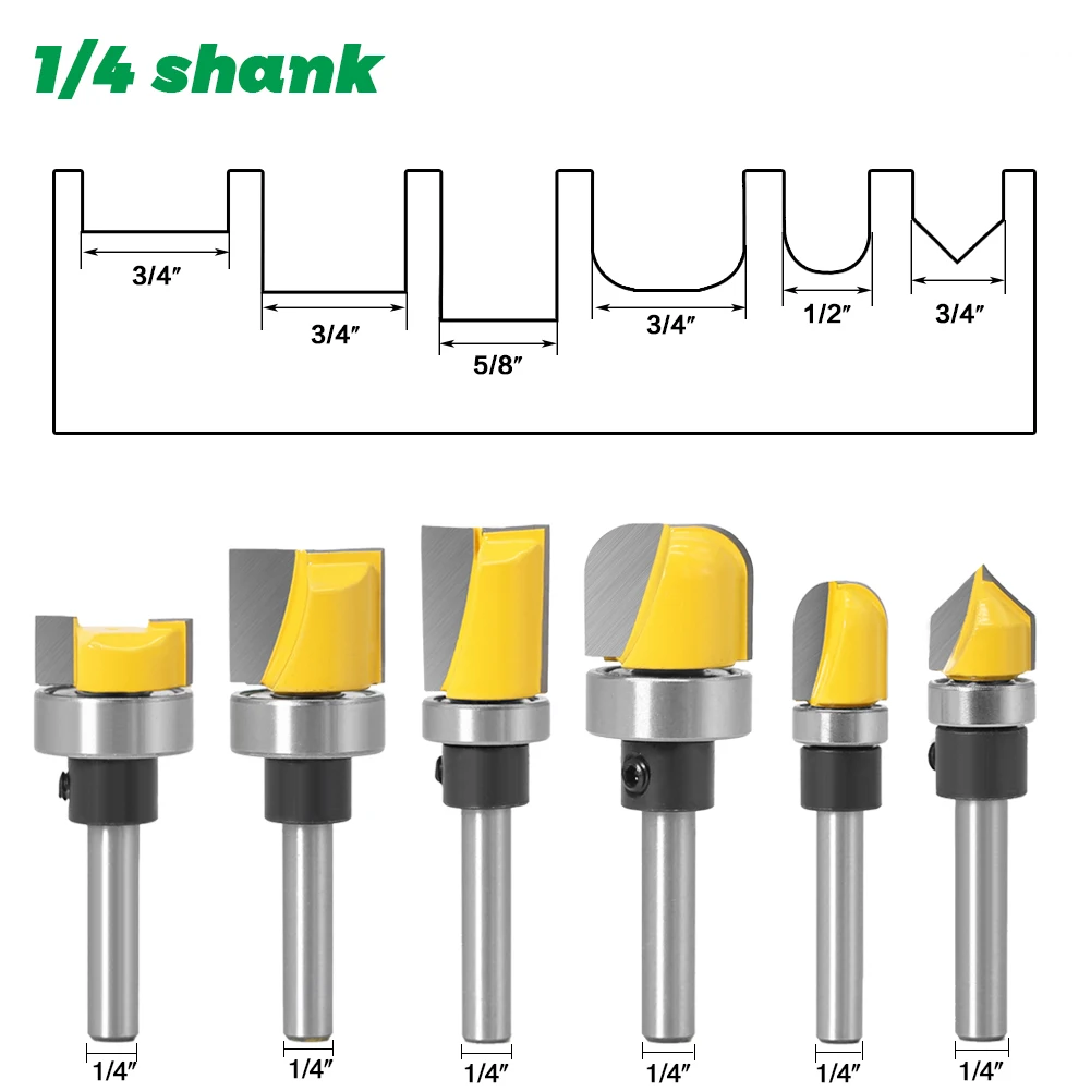 1 шт. 1/4 "6 мм хвостовик шаблон бит заподлицо отделка бит прямой бит с подшипником шарнир Mortising маршрутизатор бит древесины триммер резак