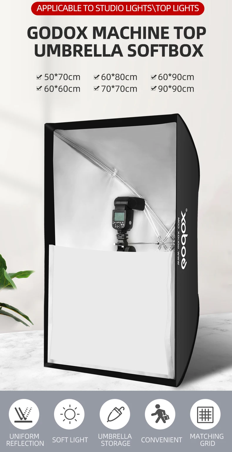 Godox портативный 60*90 см24 "* 35" Фото-зонт софтбокс Отражатель для студийной фотосъемки вспышка