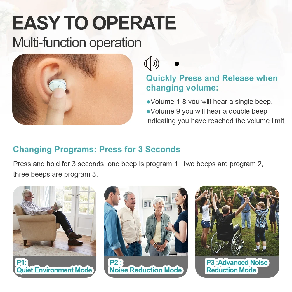Перезаряжаемый цифровой беспроводной слуховой аппарат OTC с Bluetooth 4-канальный мини-усилитель звука ITE портативный слуховой усилитель