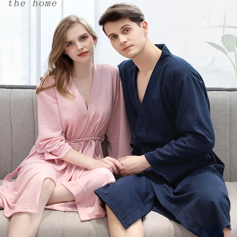 Халат для влюбленных, домашняя одежда для сна, летняя вафельная банная одежда, мужской халат для выкачки воды, сексуальный Ночной халат, мужское кимоно