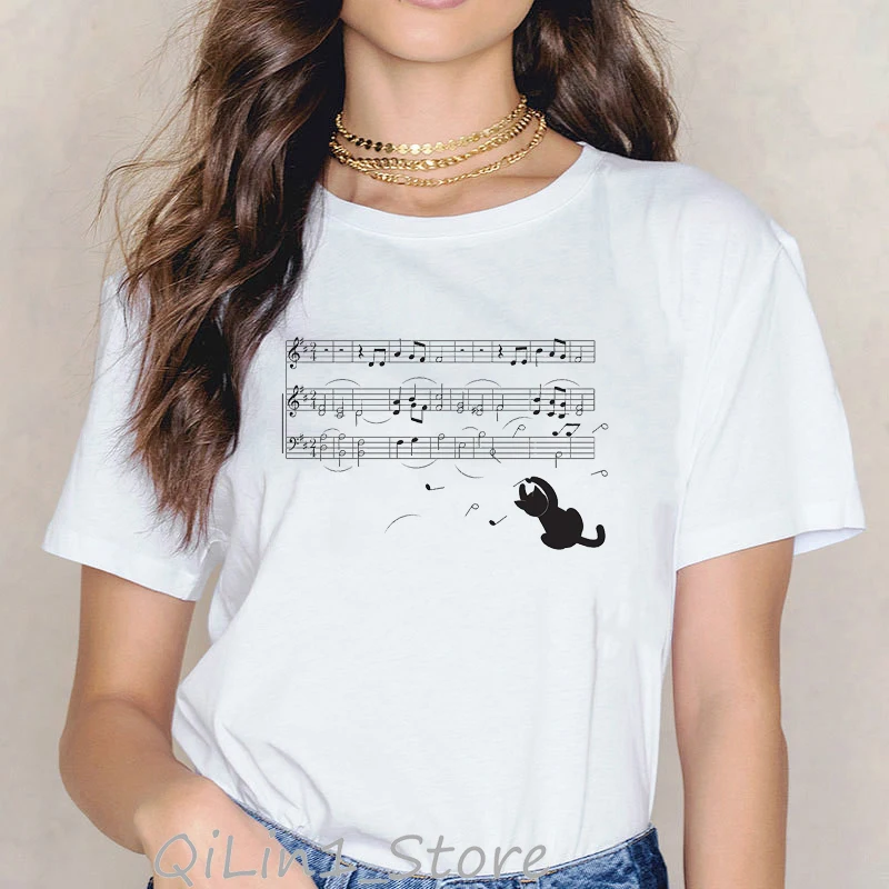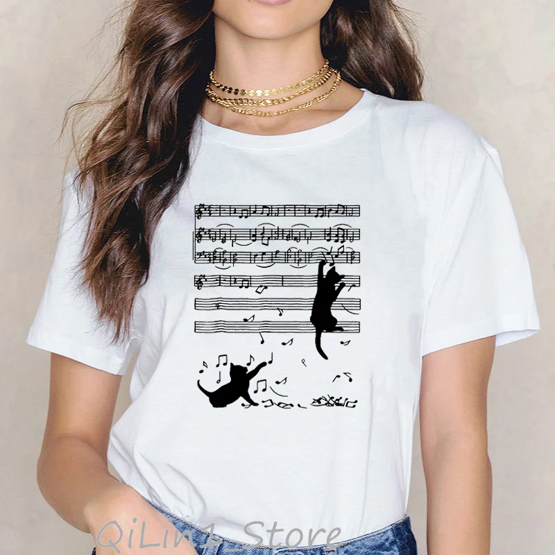 Модная женская футболка с вагидой, креативная футболка с изображением музыкальных нот, Подарочная футболка с котами, забавная музыкальная футболка с принтом кошки, повседневные футболки