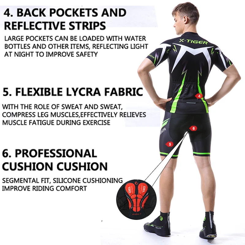 Комплект одежды X-Tiger для велоспорта, большой комплект одежды для езды на велосипеде, Быстросохнущий комплект одежды для велоспорта