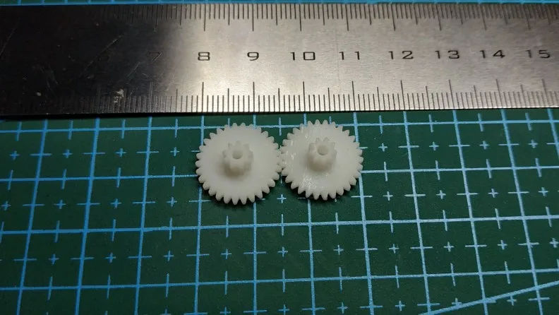 Эта смола, несмотря на то, что она говорит, что это ABS, она совсем не гибкая. Цвет очень бледный, вы не можете увидеть детали очень хорошо. Как бы то ни было, усадка хорошая, все части идеально подогнаны без подачи ключей.