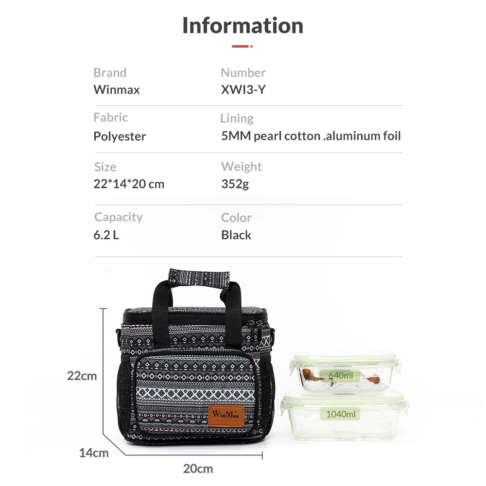 Брендовые сумки Winmax для сохранения свежести продуктов, портативные сумки для обедов на молнии с теплоизоляцией, удобный Ланч-бокс для женщин, сумки-тоут