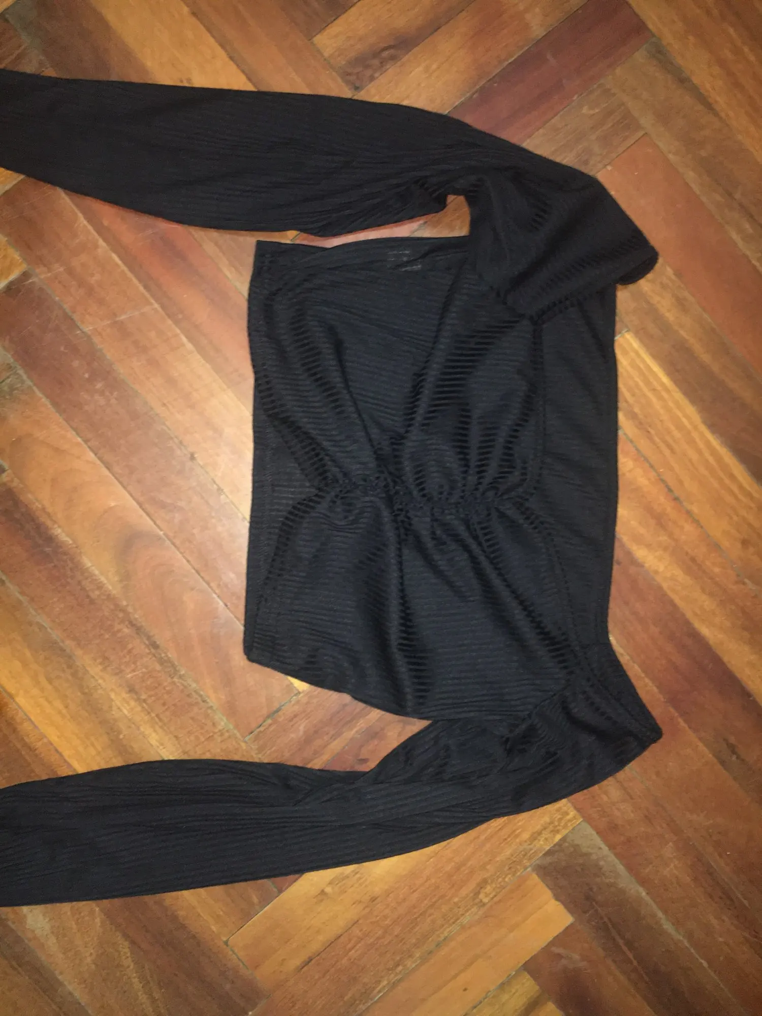 Эх, так хотела эту кофточку, но она оказалась мне большой. Мой параметры 85/58/85. Держится только за счёт груди. Рукава широкие, сама кофта очень свободная. Я думала она будет в облипку. Ткань откровенно прозрачная, так что для смелых девушек ;)