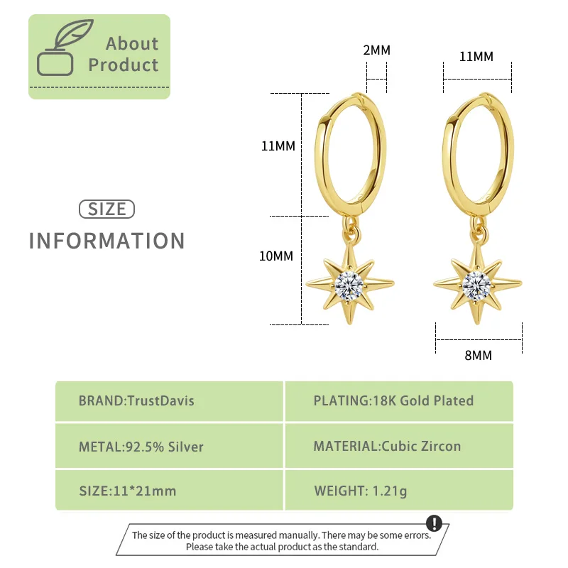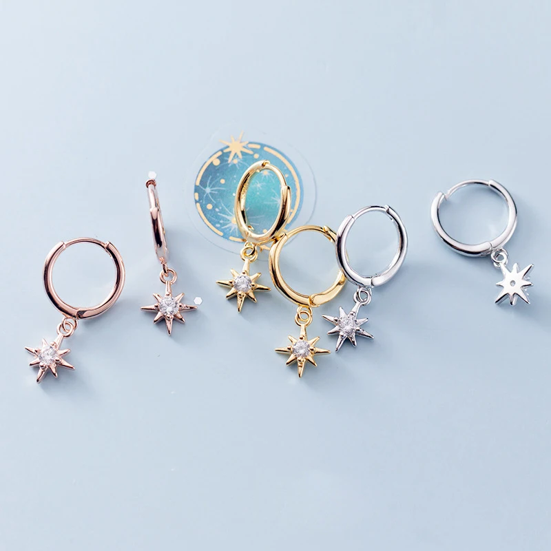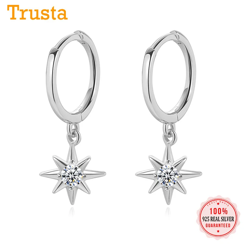 Trustdave, подлинные геометрические Звездные Серьги-кольца с цирконом из стерлингового серебра 925 пробы для женщин, изящные вечерние ювелирные украшения, аксессуары