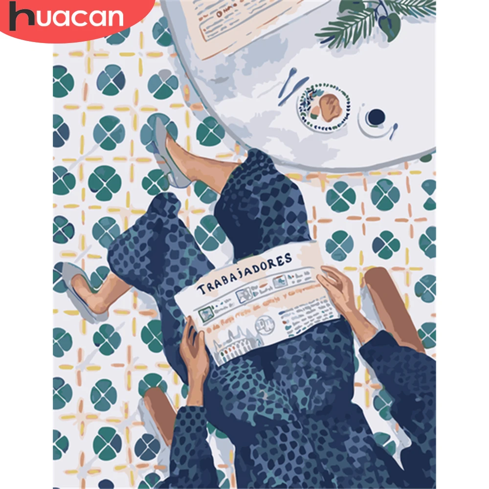 HUACAN картина по номеру кофе рисунок на холсте Ручная роспись иску...