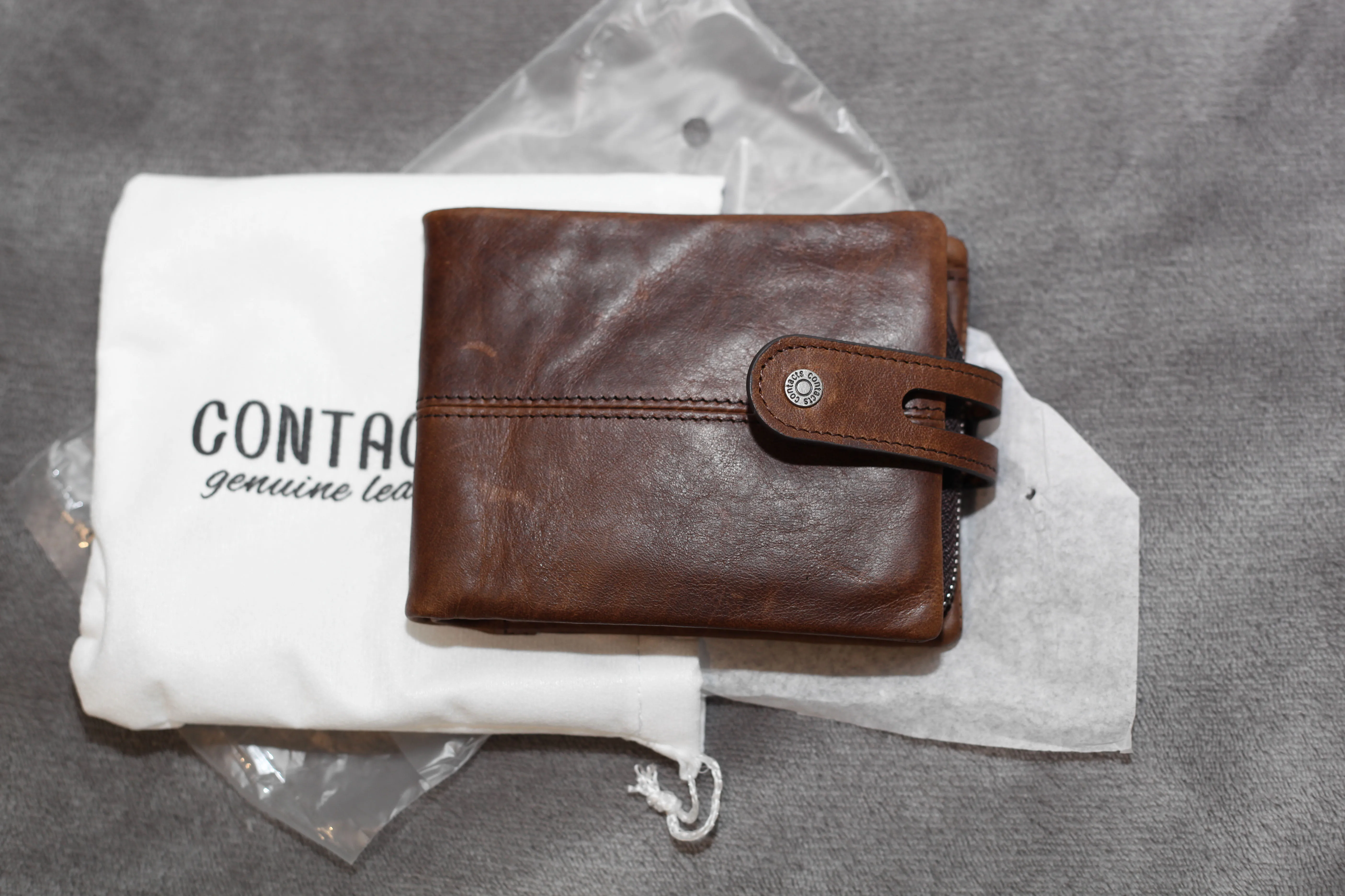 Мужской кошелек CONTACT'S, повседневный короткий кошелек из коровьей кожи, клатч