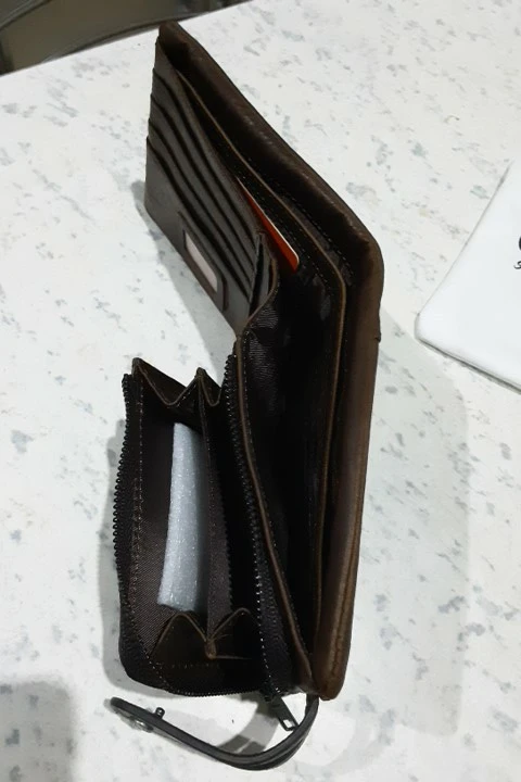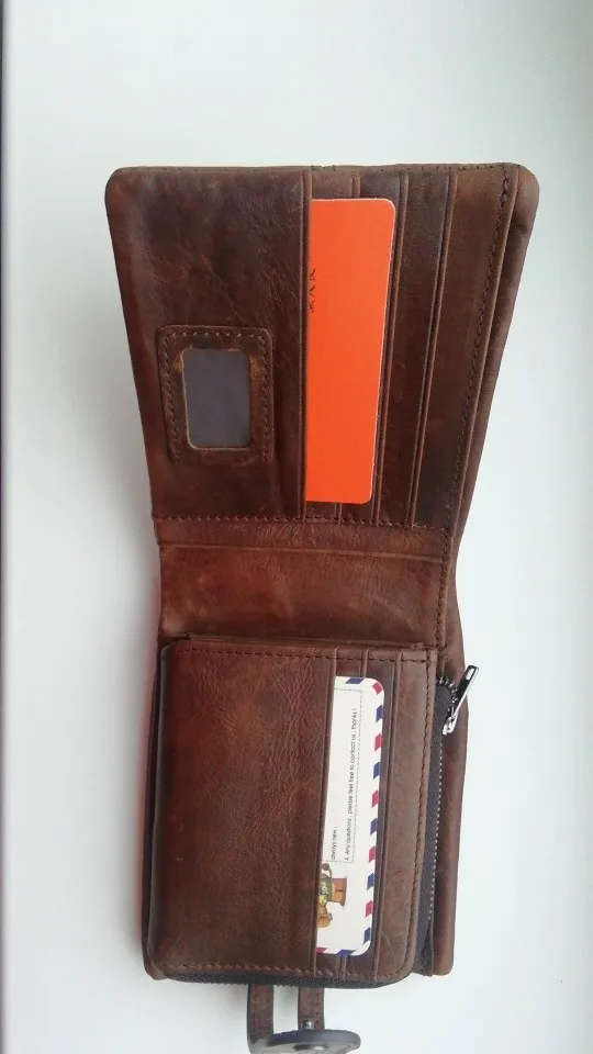класнючий кошелек.Натур.кожа,очень брутальный,немного трудно ходит замочек,т.к.железная.Стоил с пересылом 15.53,а чисто кошелек 15.38.Пришел в омнива ячейку.Упакован компактно,в чехол,как для сумок извесных брендов.и пакетик.Хоть и хороший оранжевый пакет(бандероль) а не как обычно тонкий черный-приятно.Шел меньше месяца,быстро.Заказан 17.12,пришел смс 8 января.Единственная посылка за последние месяца так быстро пришла,это еще учтем,что на праздники выпадала его трансфер.Спасибо за скорость!С продавцом не общались.За такие деньги,кожа и качество СОВЕТУЮ однозначно!Спасибо!!! Подарю на стар.-нов.год,,через 5 дн.позже дополню отзыв.Критика или похвала мужа будет уместна
