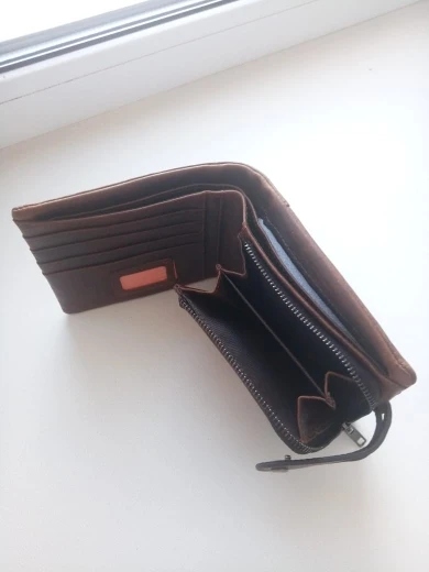 Кошелек неплохой, сшит хорошо. Но гигантский, все купюры значительно меньше, можно было уменьшить на треть.