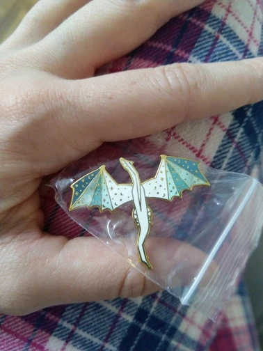 Симпатичный дракончик - красивый качественный значок. Отослал продавец быстро, упаковал хорошо, прибыл в течении двух недель - очень быстро. Всё отслеживалось. Продавца рекомендую.