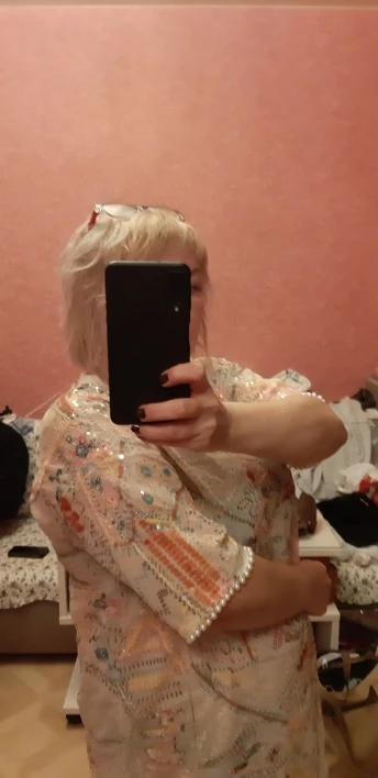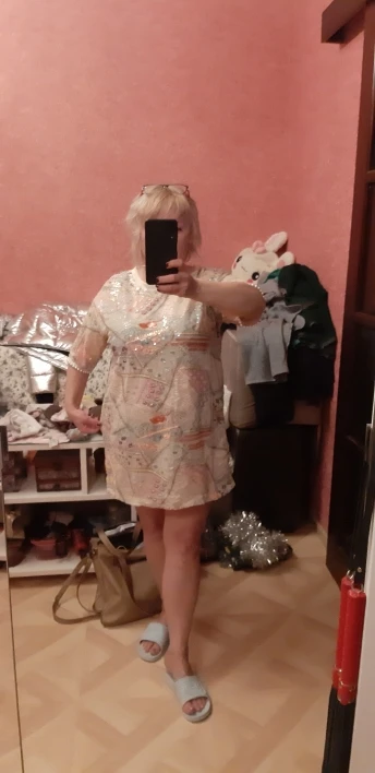Очень приятный. На мой 1,67 m, он подходит как футболка, в описании указано, что это футболка. Я сделал это короткое платье с дополнительным материалом вниз, на основе. :) выглядит отлично!