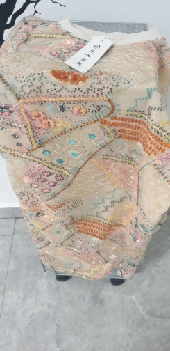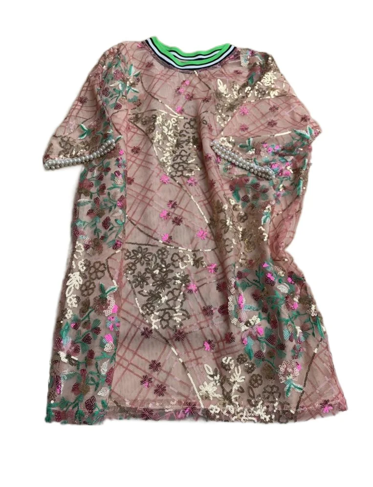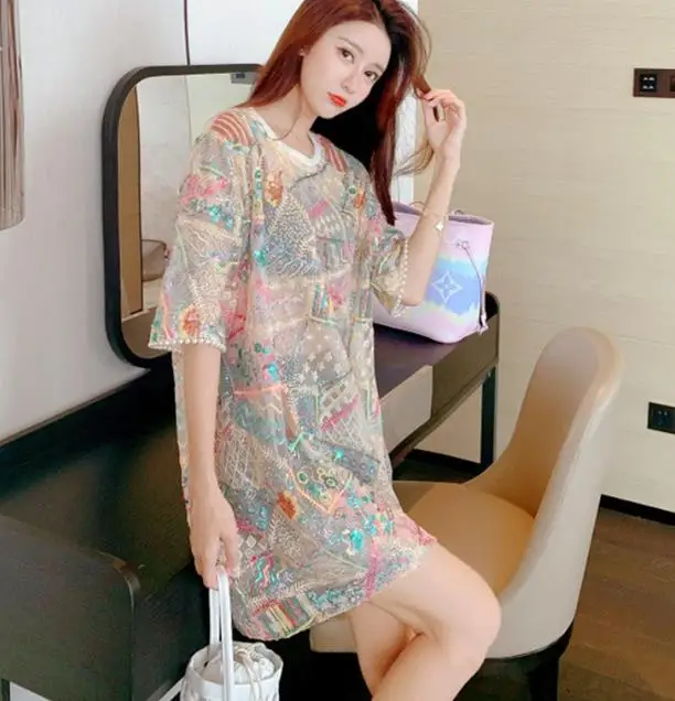 Женские Длинные футболки с блестками, в европейском стиле, футболка с вышивкой, футболка с пайетками