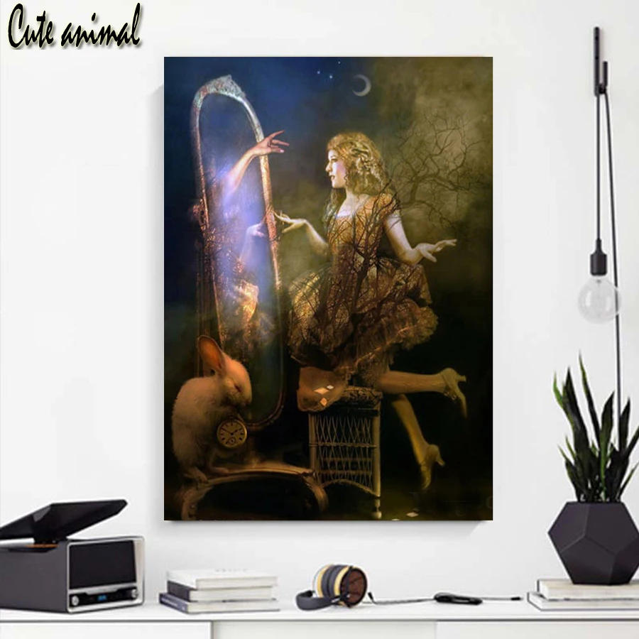 DIY 5D алмазная картина волшебное зеркало Девушка полный дрель домашний Декор Картина Стразы мозаика Алмазная вышивка, портрет подарок