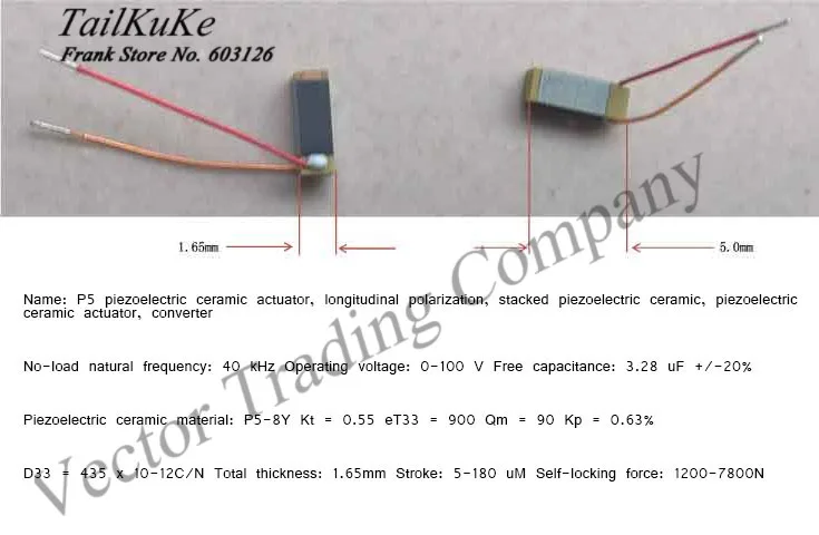 Многослойный пьезоэлектрический керамический привод P5, продольно-поляризованный, многослойный пьезоэлектрический керамический s