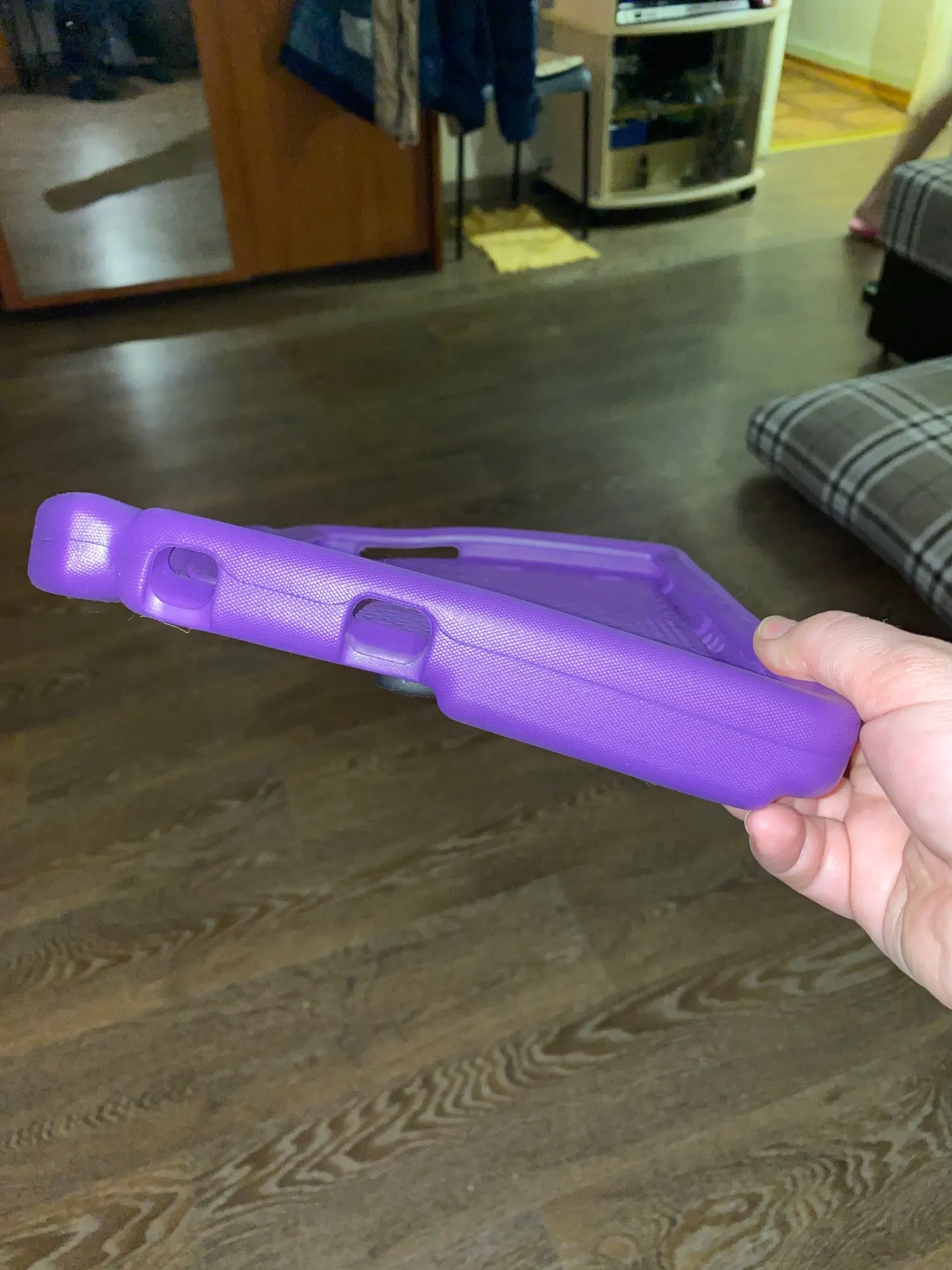 Достаточно мягкий материал, почти рыхлый. Должен быть удобен для ребёнка и хорошей защитой для планшета.