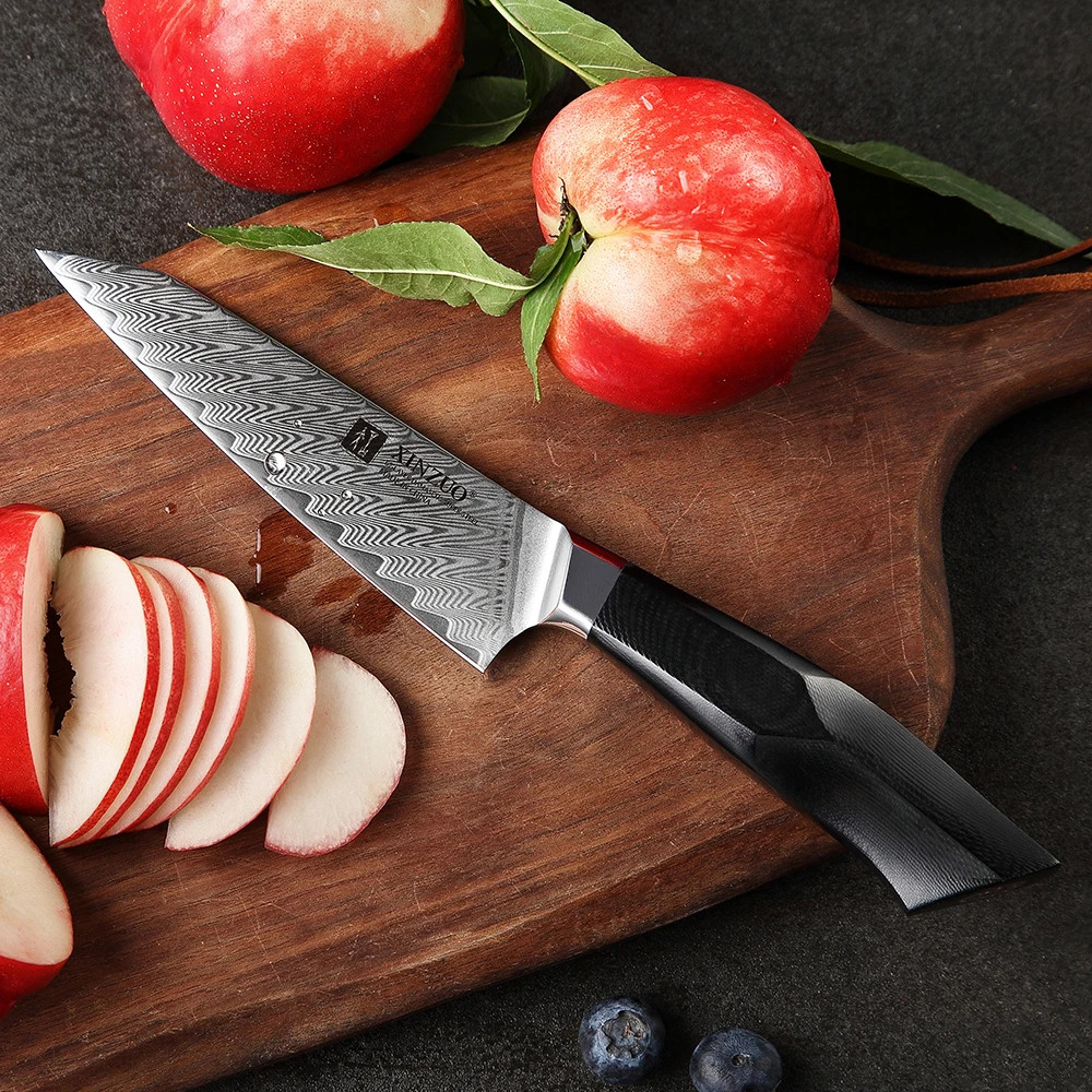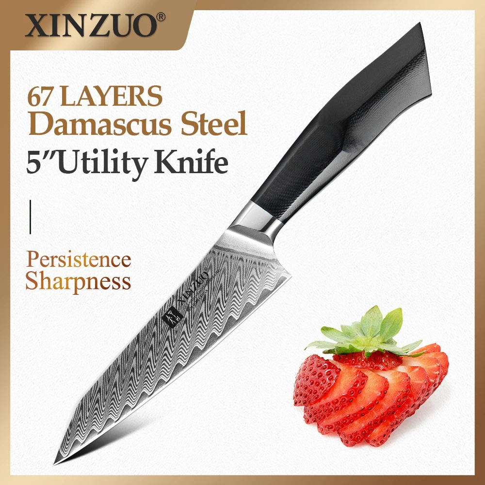 Универсальный нож XINZUO 5 дюймов из высокоуглеродистой дамасской стали, кухонные ножи, для приготовления фруктов, нож для очистки овощей с рукояткой G10