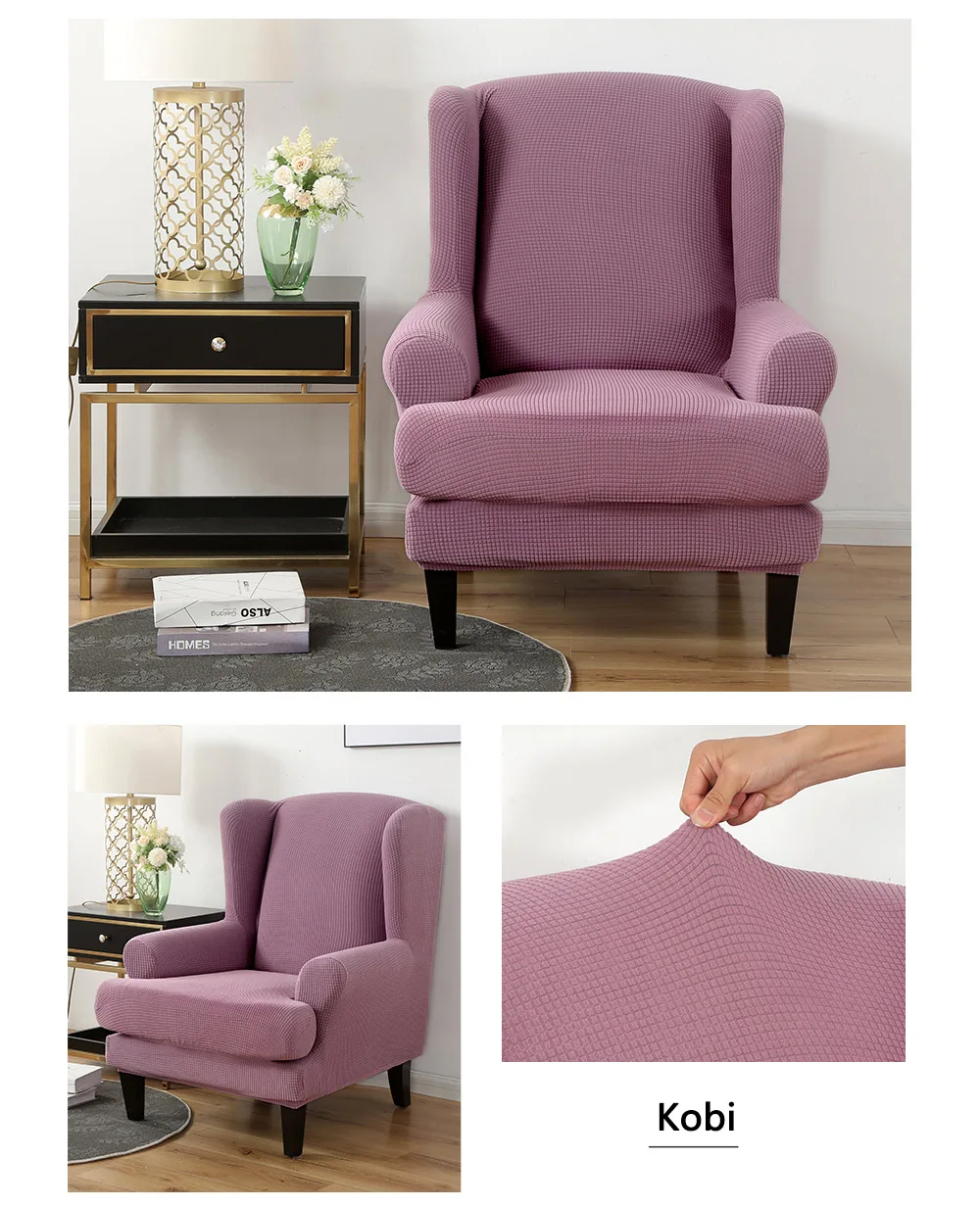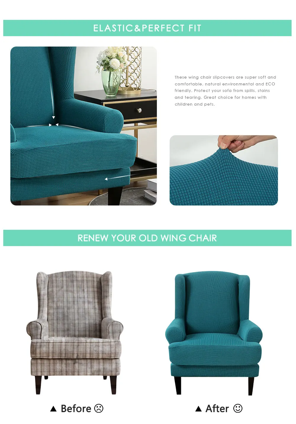 Чехол на спинку стула с крыльями, жаккардовый спандекс, эластичные Чехлы для офисных стульев, стильный комплект из 2 предметов с эластичной лентой