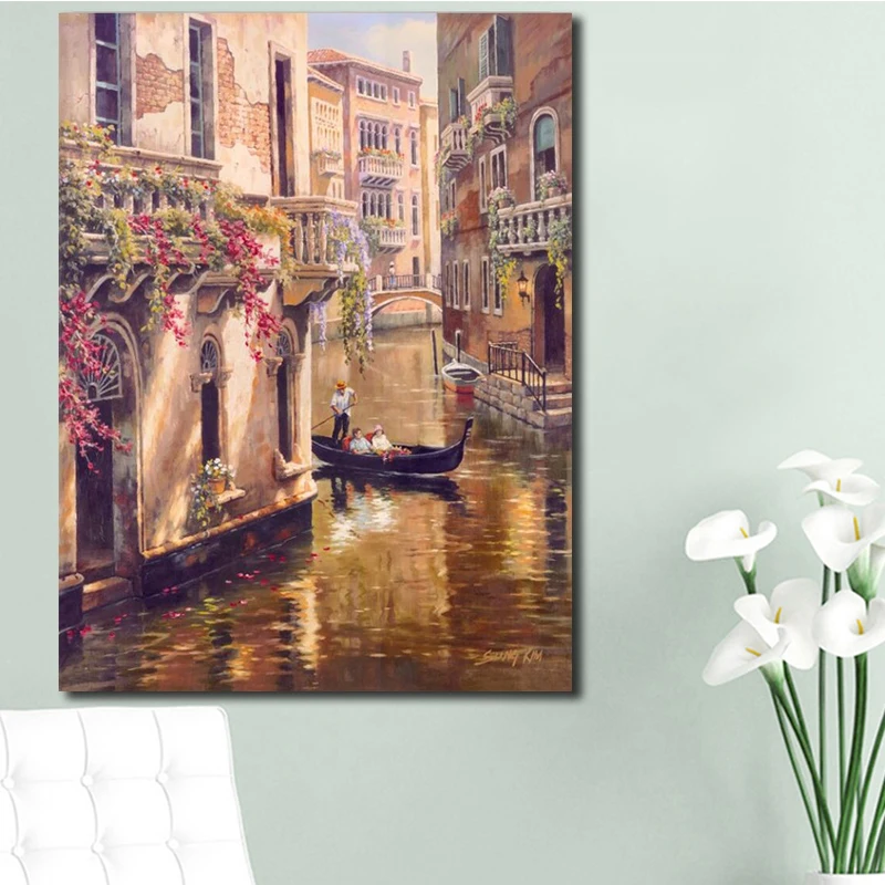 Классический Венецианский городской пейзаж, холст, живопись, абстрактный пейзаж, плакаты и принты, настенные картины для гостиной, домашний декор