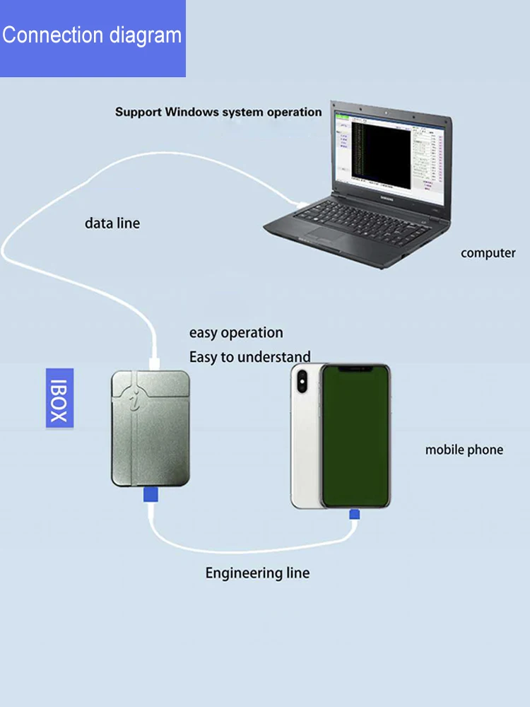Один клик в DFU (обновление прошивки разработки), то есть для режима принудительного подъема прошивки iPhone, инструмент программирования iBox DFU может читать и записывать базовые данные Nand flash для iPhone и iPad без разборки.