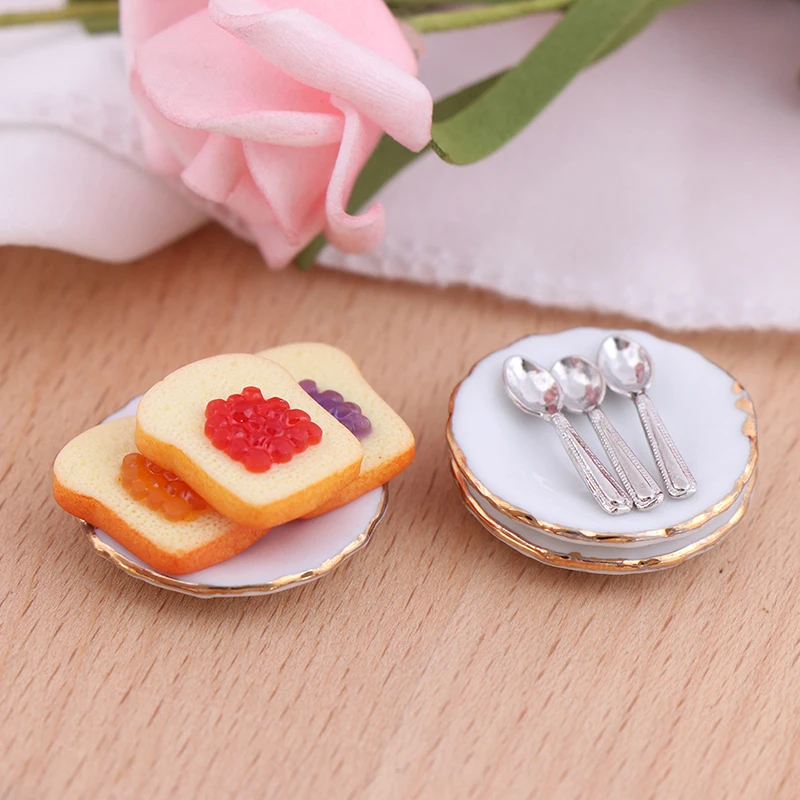 3 шт.компл. 1:12, мини-тосты для кукольного домика с маленькой ложк...