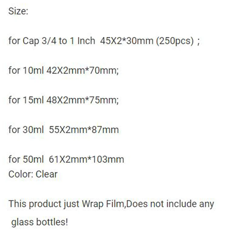 200 шт., термоусадочная пленка для 10 мл, 15 мл, 30 мл, 50 мл
