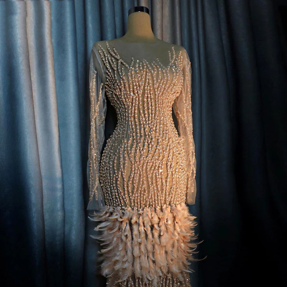 Элегантное платье-Русалка с персиковым блеском, украшенное бисером,...