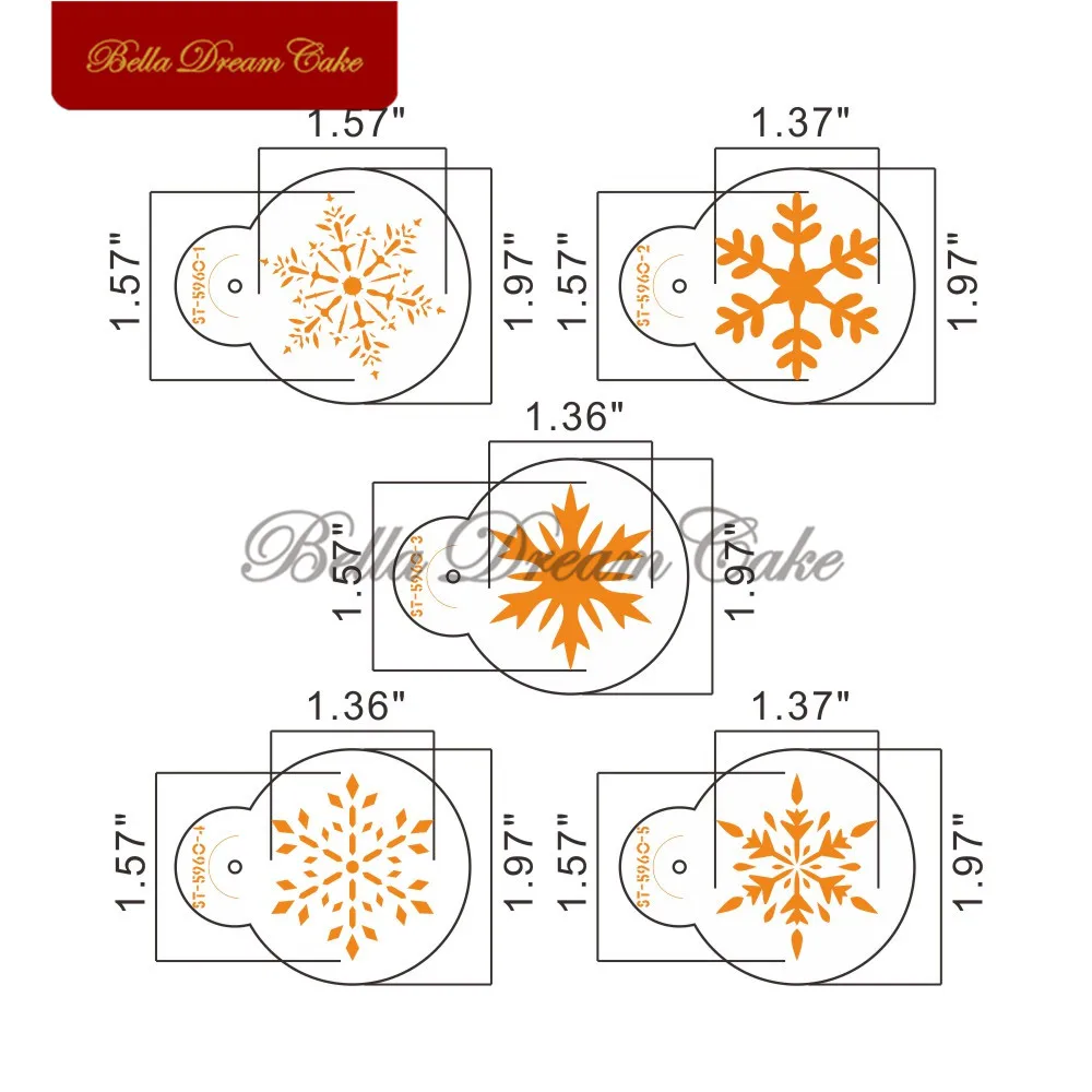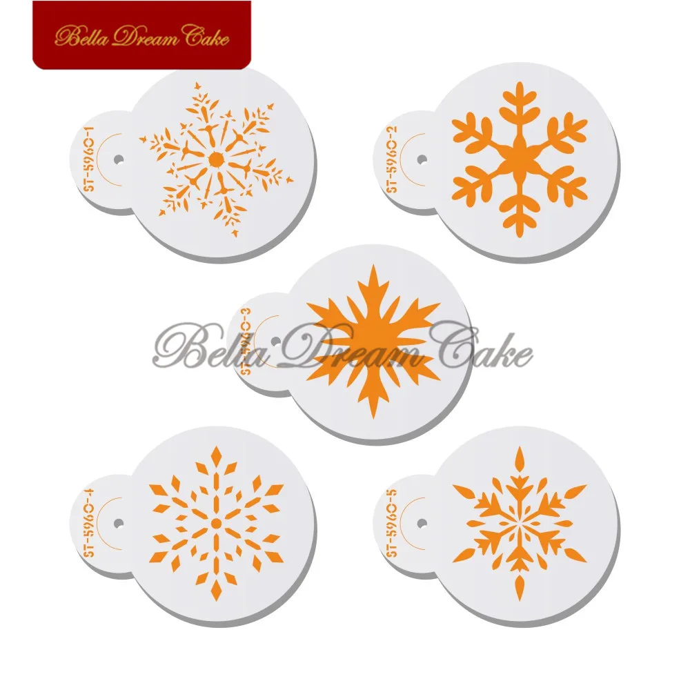 5 шт., Рождественский трафарет для печенья в виде снежинки, шаблон для рисования, инструменты для трафарет для украшения торта кофе, Аксессуары для выпечки