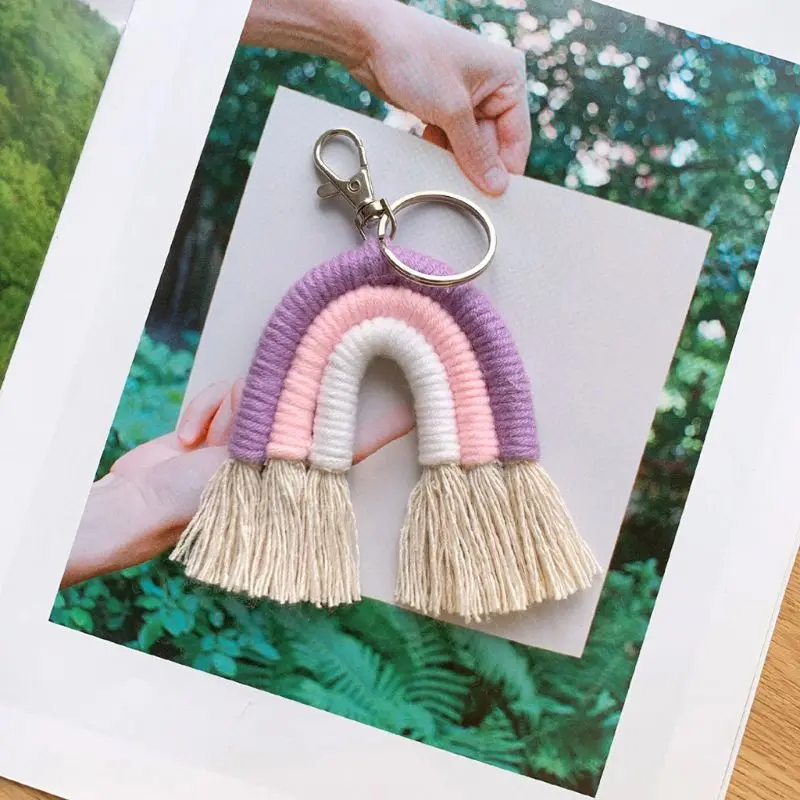 Процесс: с использованием разноцветных хлопковых канатов, ручной работы в радужные брелки. Немного радуги, чтобы осветить, а затем осветить ваш день.