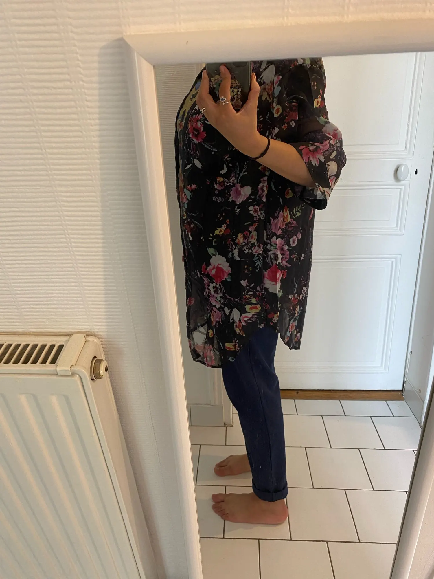Только 4 звезды, потому что нет списка композиций, но я предполагаю, что это 100% полиэстер на основе прикосновения. Это довольно сетка, но принт красивый и подходит. Я получил размер XL, я на рост 172 см и ношу европейский размер 38.