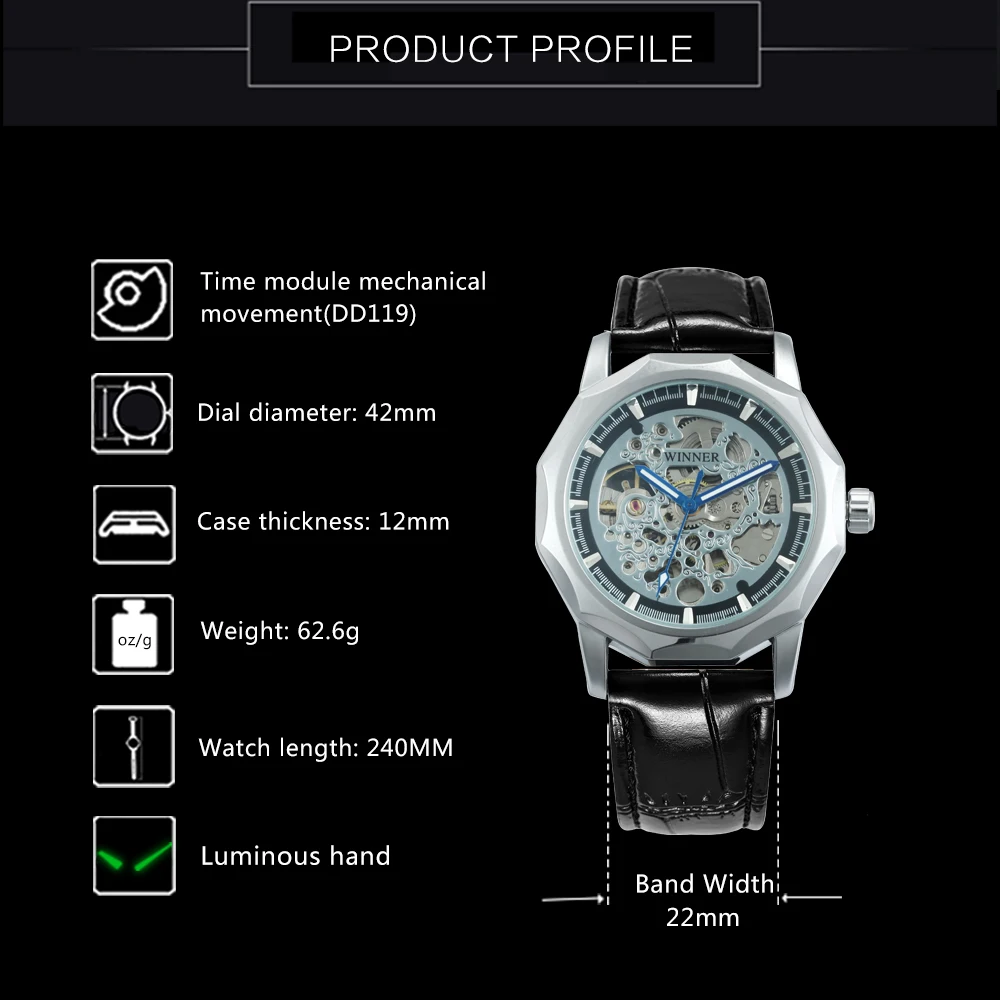 Часы наручные WINNER Мужские автоматические, механические Роскошные брендовые Дизайнерские повседневные часы-скелетоны с кожаным ремешком