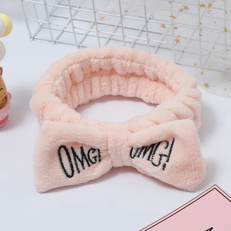 10 шт.лот оптовая продажа OMG письмо из Корал-флиса с бантом Резинки для волос для женщин уход за кожей лица Ручная стирка аксессуары для волос для девочек, повязка на голову, повязка на голову