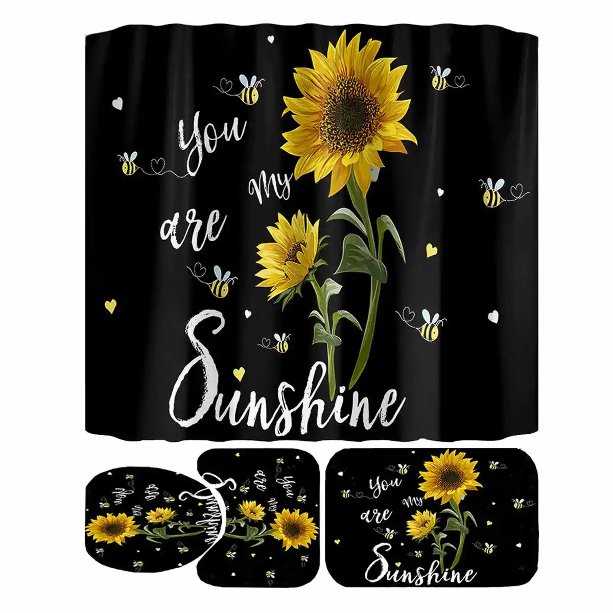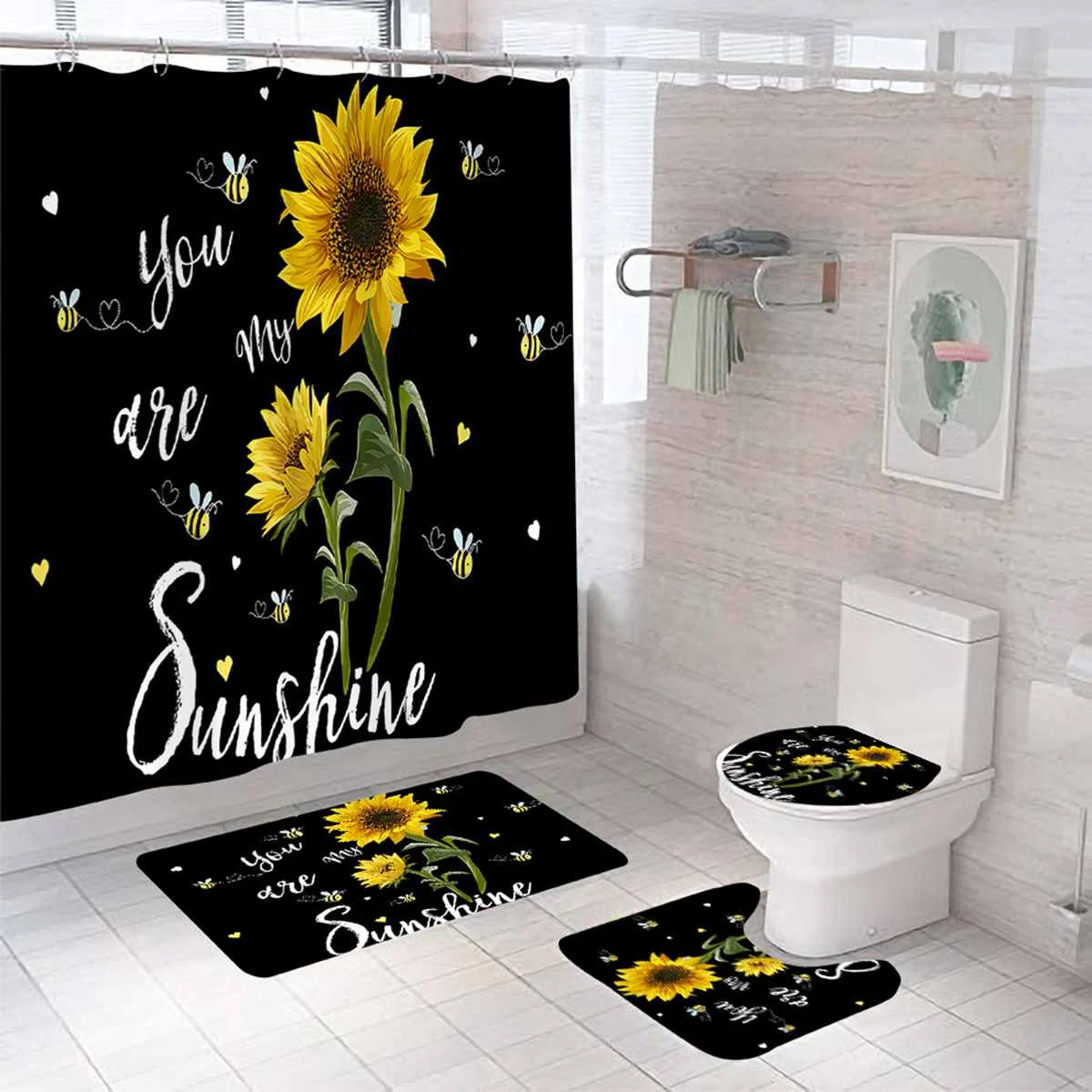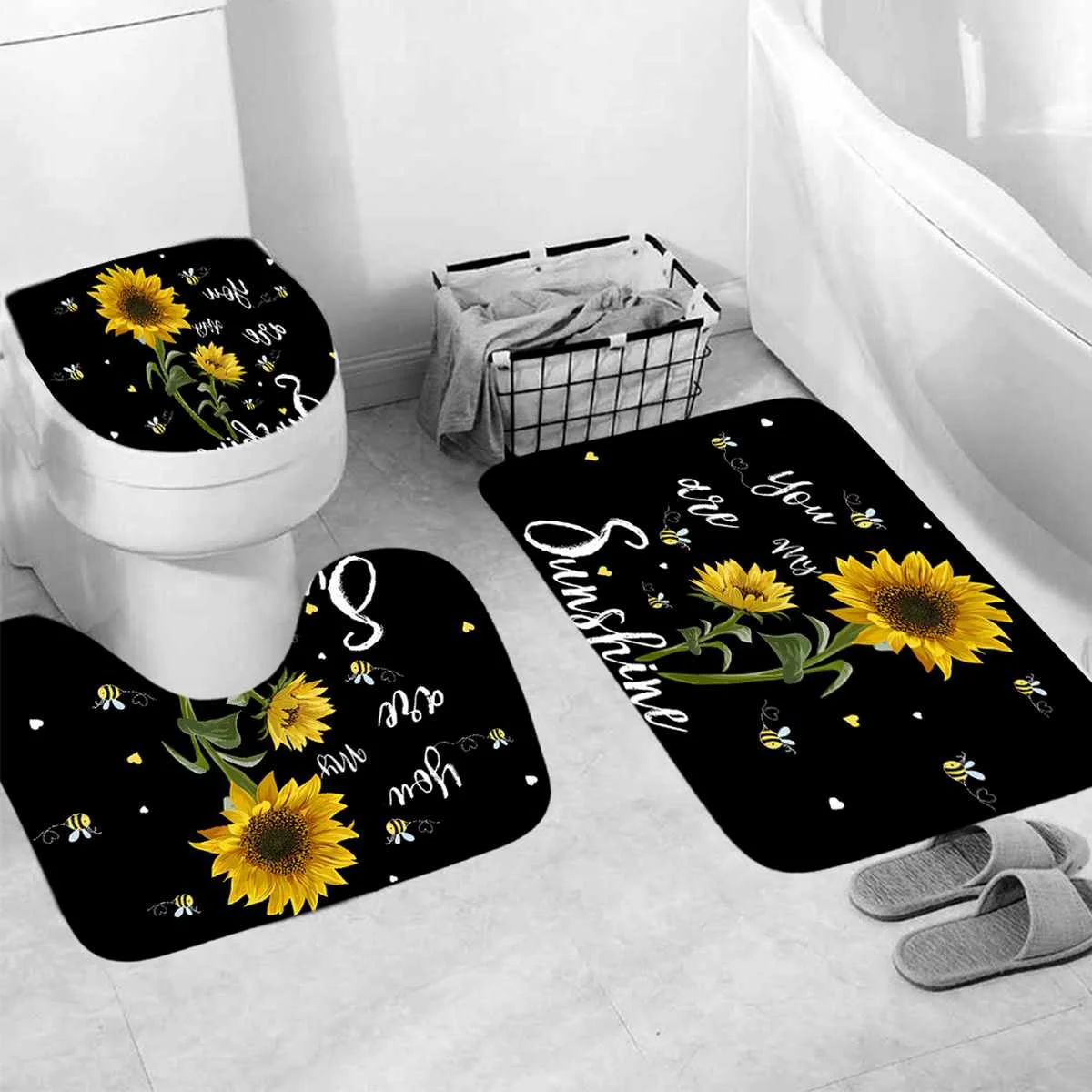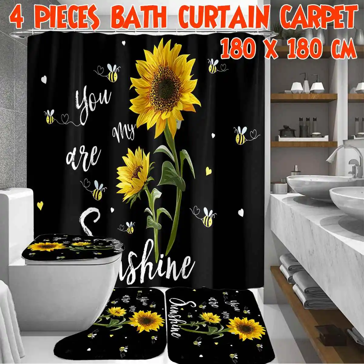 Новинка, Стильная дизайнерская занавеска для душа и ковер, Подсолнух, занавеска для ванной комнаты, коврик для ванной, набор ковров для украшения туалета