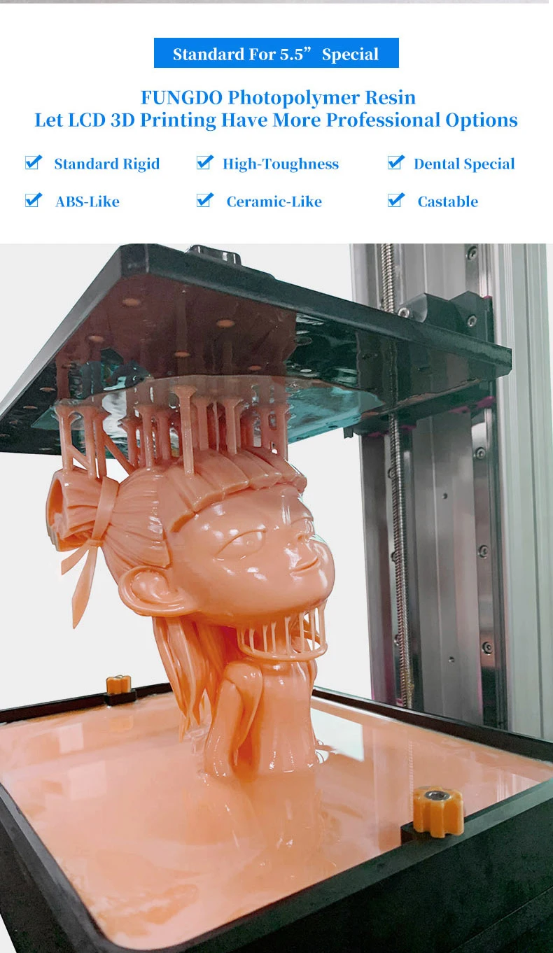 Материал FUNGDO для 3d-печати, высокопрочный фотополимер, керамика, для 3D-принтера 5,5 дюйма