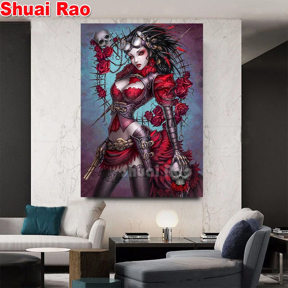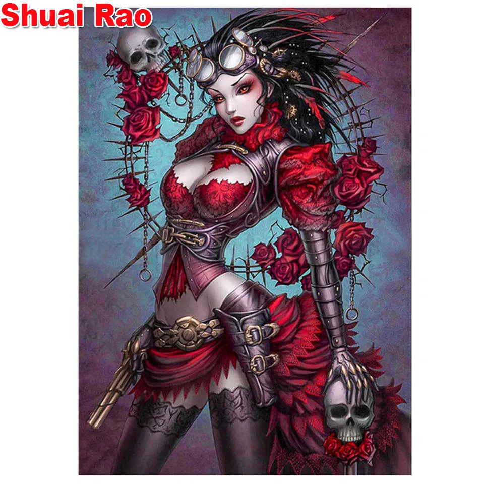 Готическая женщина алмазная живопись ремесла картины 5d роза череп девушка вышивка с Стразы мозаика алмаз искусство наклейки на стену