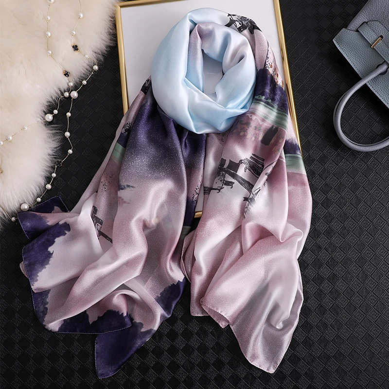 Роскошный брендовый шелковый шарф, Женские Простые шали и палантины...